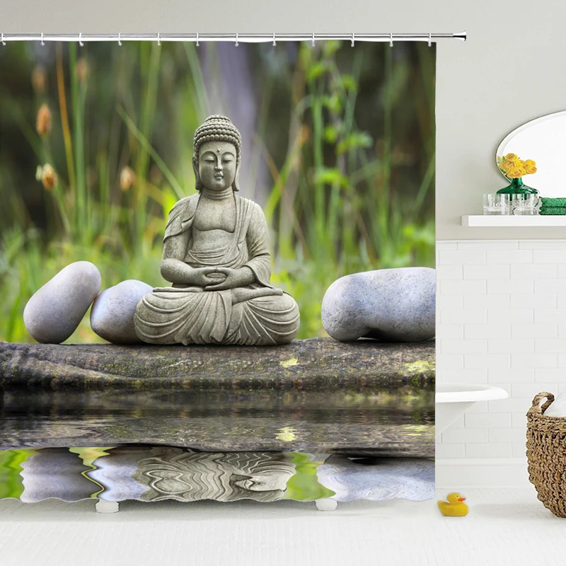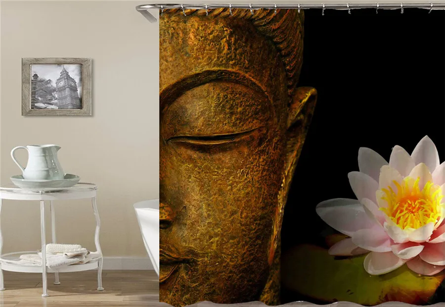 Китайский Будда занавеска для душа s Водонепроницаемая полиэфирная ткань занавеска с крючками для ванной комнаты занавеска с крючками на заказ занавеска для душа для домашнего декора