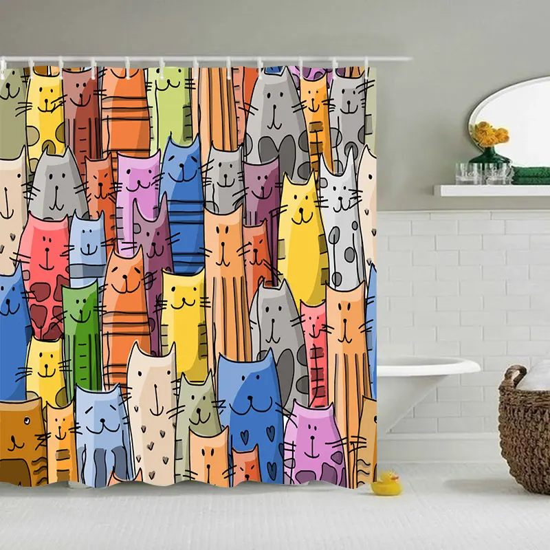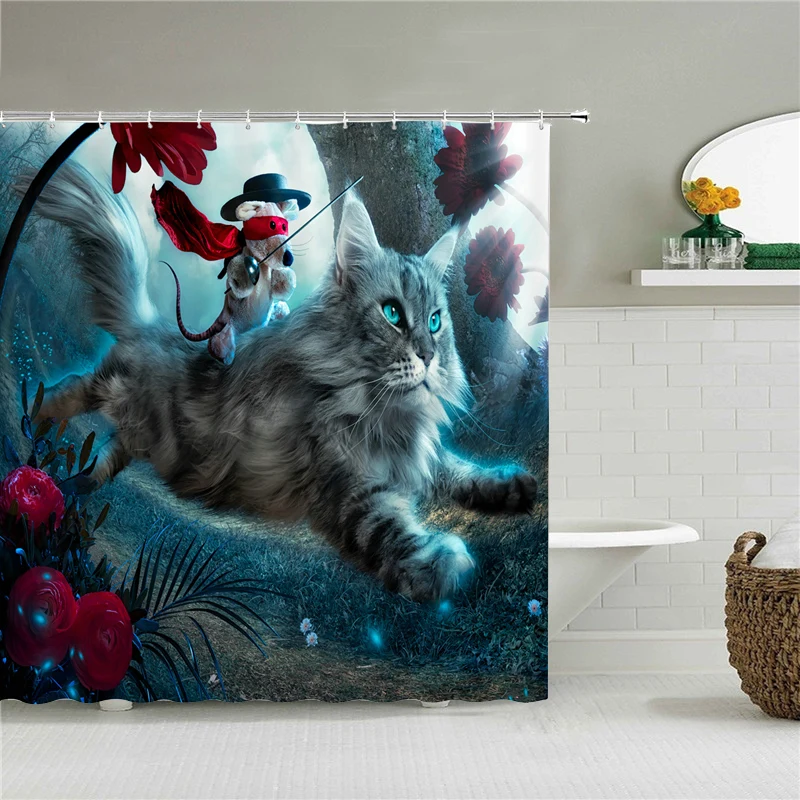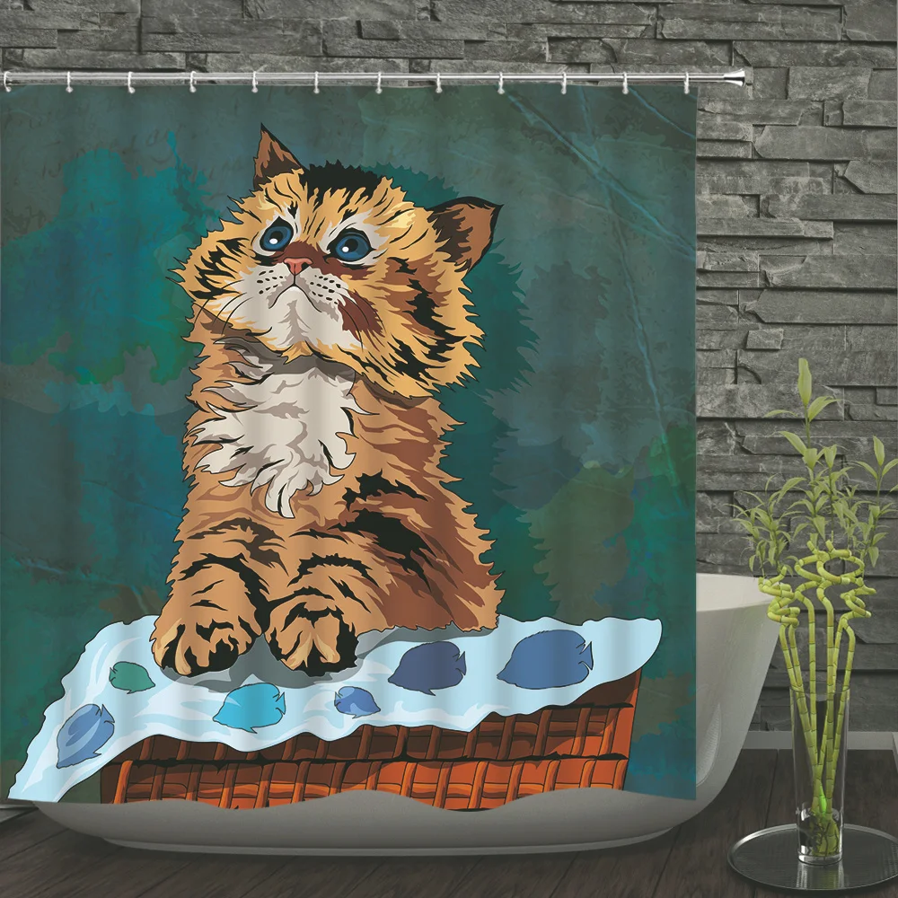 Занавеска для душа с изображением кота, занавеска для душа в ванную комнату, симпатичная тканевая занавеска для душа 3D с крючками, забавная Водонепроницаемая занавеска для душа или коврик