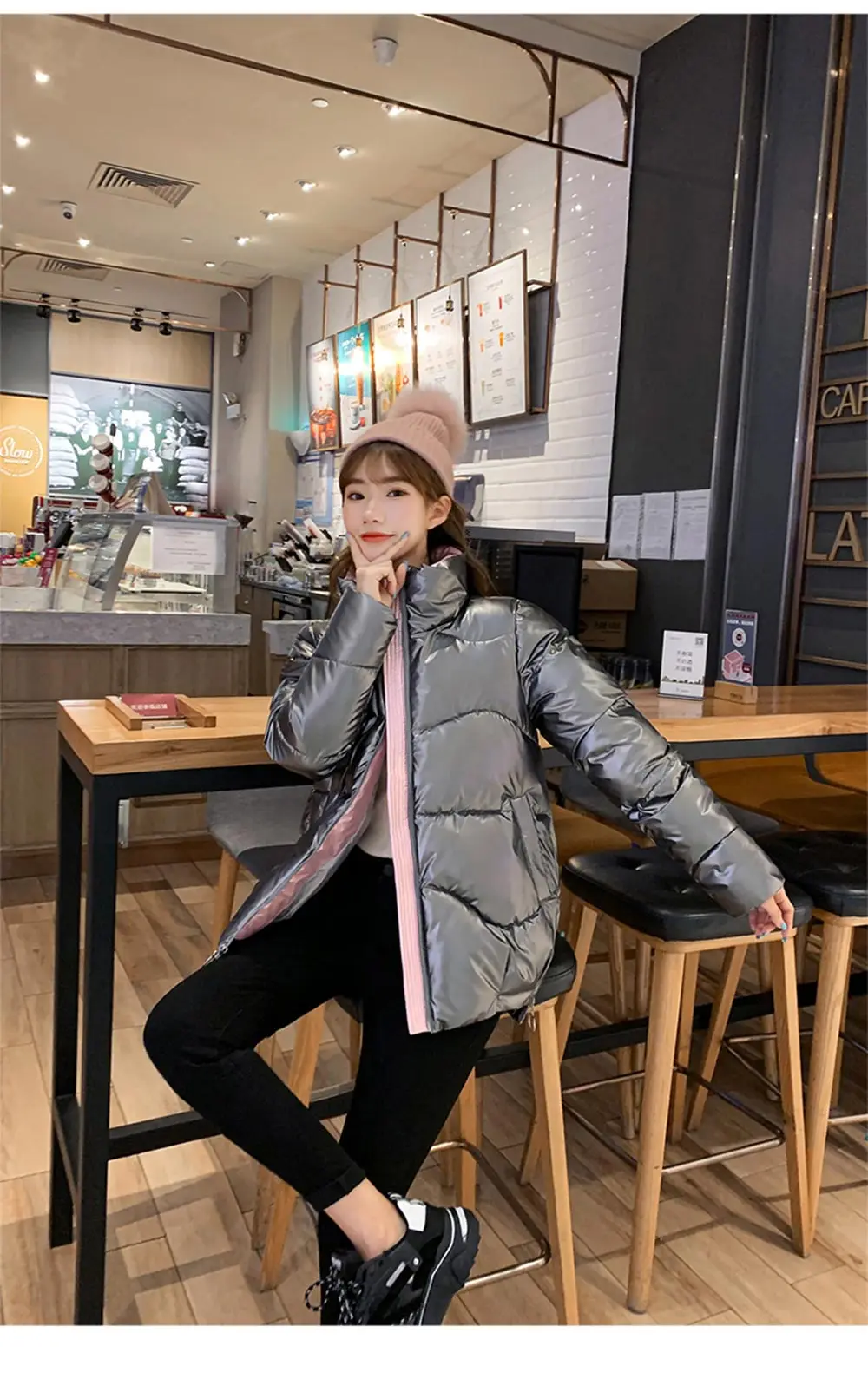 Куртка женская осенне-зимняя с хлопковой подкладкой и воротником-стойкой, 2020