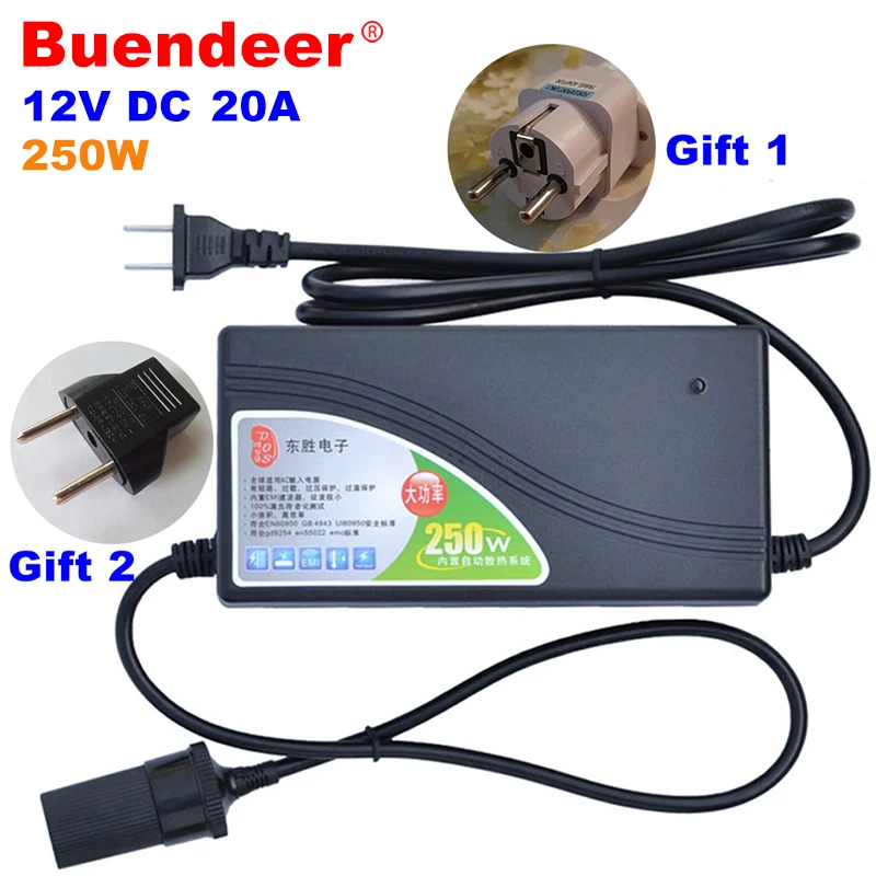Преобразователь мощности Buendeer, адаптер для автомобильного прикуривателя, 250 Вт, 110-220 В переменного тока, вход постоянного тока 12 В 20 А