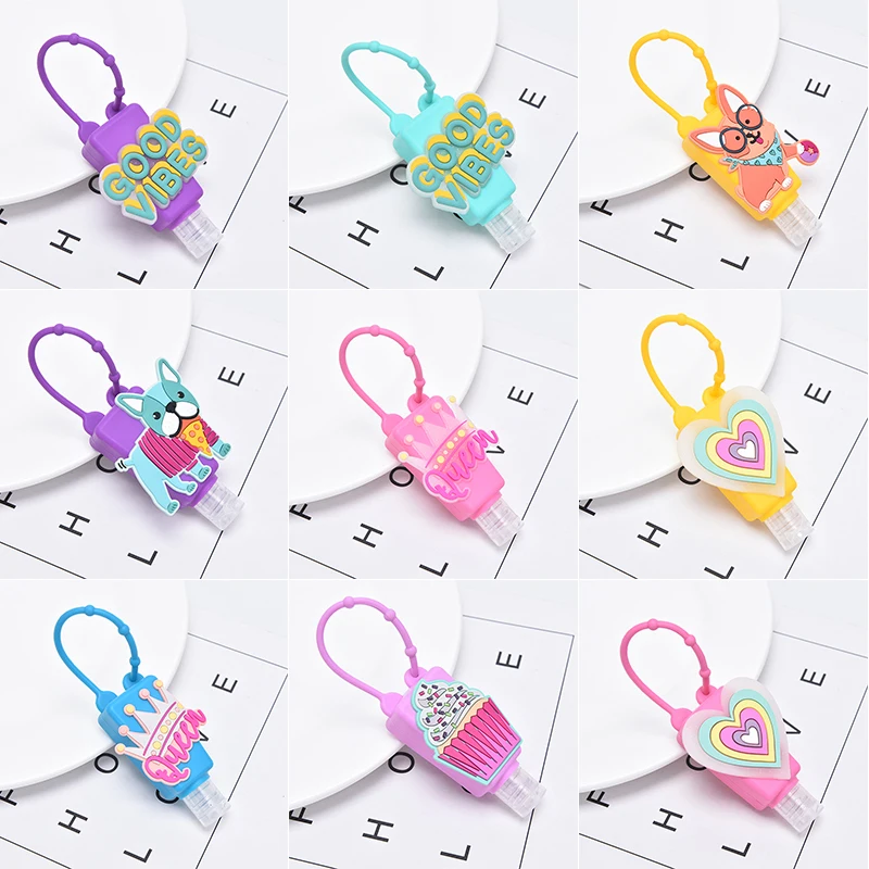 Спецификация:Состояние на 100% абсолютно новыйМатериал: силикон + пластикФорма: мультфильмЕмкость: 30 млРазмер: как показано на картинкеУпаковка включает: 1 шт. * держатель дезинфицирующего средства для рук (с пустой бутылкой)