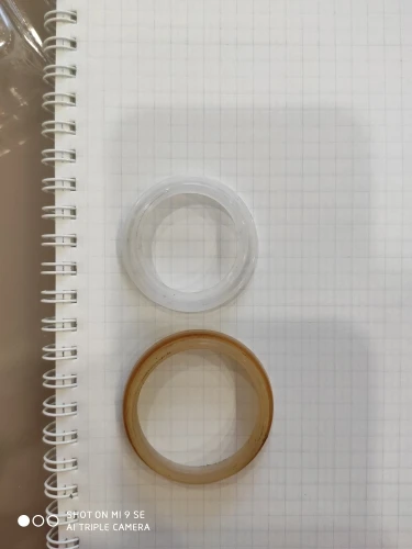 Вообще, я очень не доволен! я расстроен! Описанию не соответствует! Заказываю у этого продавца второй раз. В первый раз заказал размер поменьше, оказались малы по диаметру, еле натянул. Ок, думаю надо заказать следующий размер, побольше. Заказал, пришли. Стал мерить, теперь слишком большие. Болтаются на крышке свободно. Короче, два раза деньги на ветер! Очень не доволен! Первое фото, новое кольцо. Второе фото, родное кольцо. ( Термос биосталь)