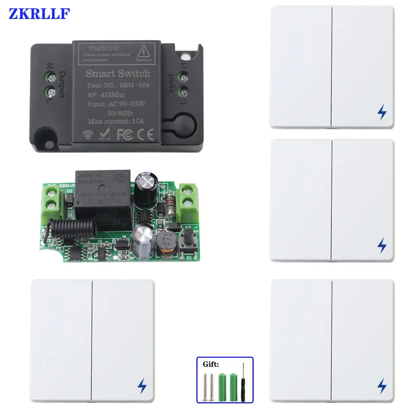 ZKRLLF 433 МГц переключатель универсальный беспроводной пульт дистанционного управления AC 220 В 10Amp 1CH RF релейный приемник передатчик для светодиодныйсветильниклампа вентилятора
