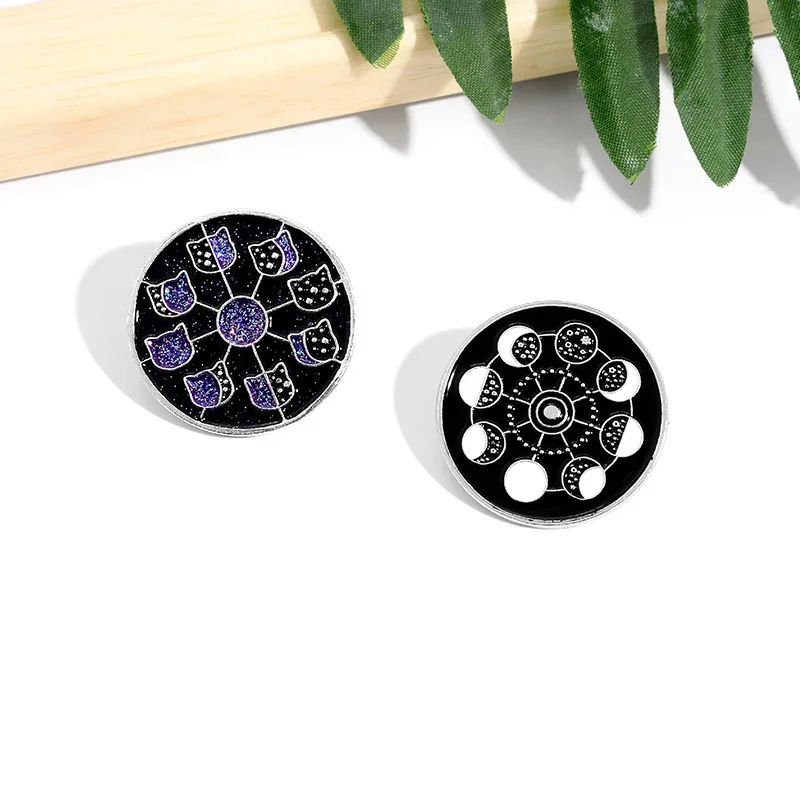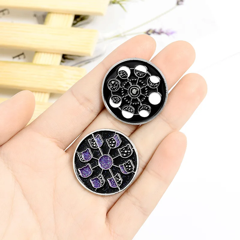 Значок для женщин, металлический, в стиле панк, с фазами астрономической Луны, брошь, эмалированный штифт