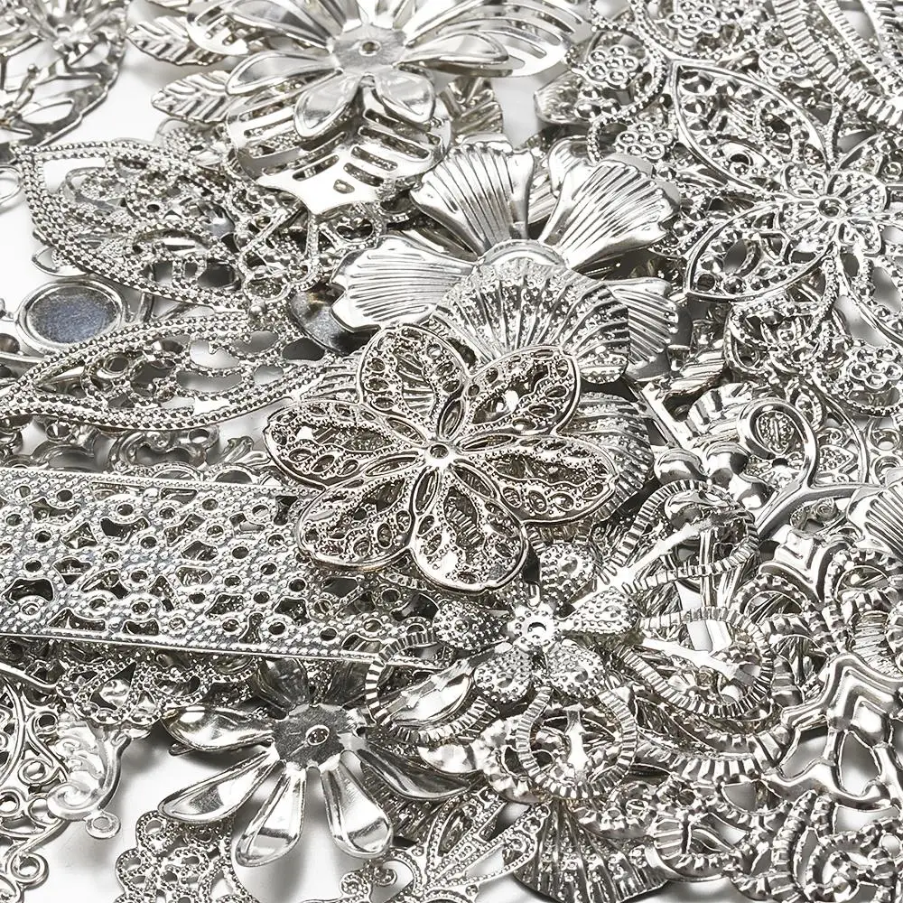 Смешанные металлические бусины в форме цветка, филигрань шапки, соединители, железные поделки, подарочные украшения, золотые Родиевые шармы, для самостоятельного изготовления ювелирных изделий