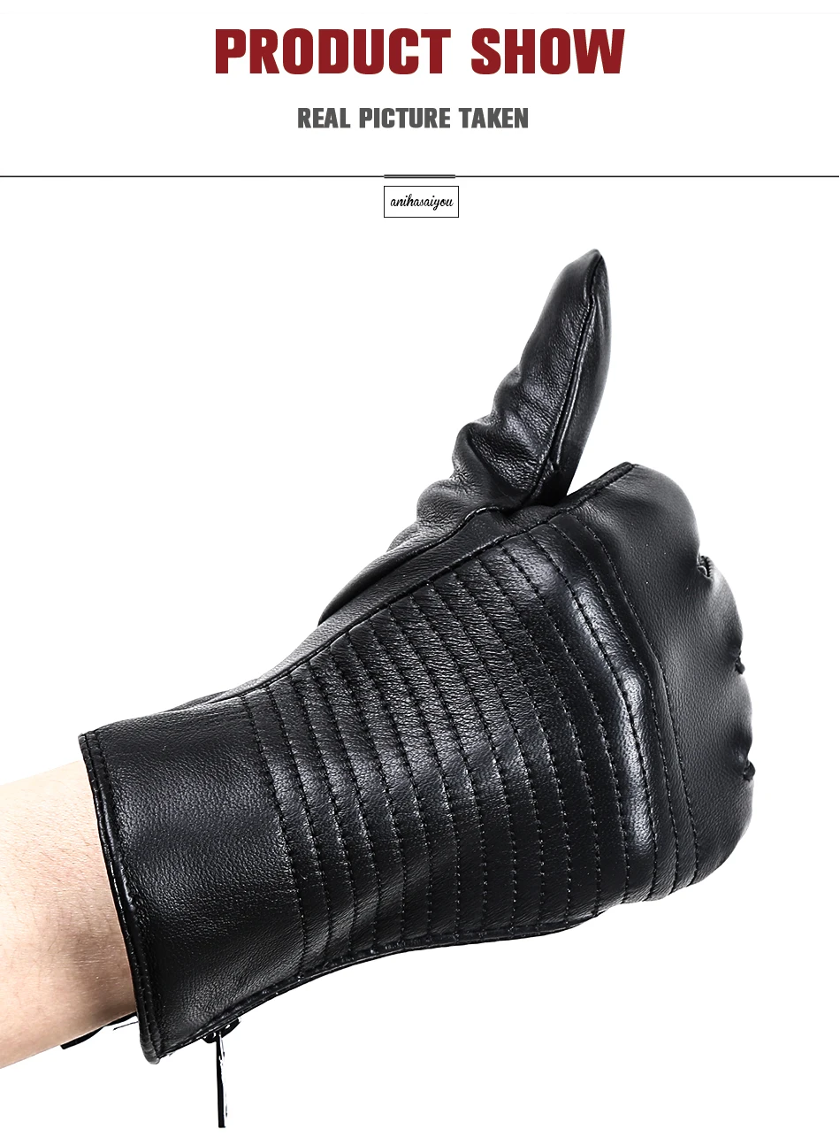 Мужские кожаные перчатки, мотоциклетные перчатки из овчины, зимние ...