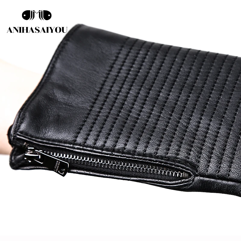 Высококачественные модные черные мужские перчатки из овечьей кожи м...