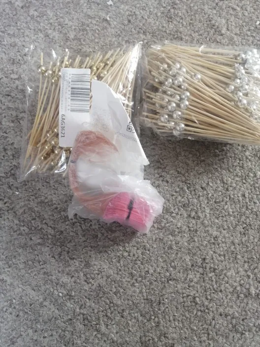 Особенности:100% Новинка и высокое качествоИдеально подходит для фруктов, десертов, приготовленной пищи и многого другого, подходит для многих случаев, таких как буфет, домашние, вечерние и так далее.Имитация жемчуга, также может использоваться для украшения коктейлей и сэндвичей, Натуральный Бамбуковый материал, нетоксичный и не будет легко сломаться.