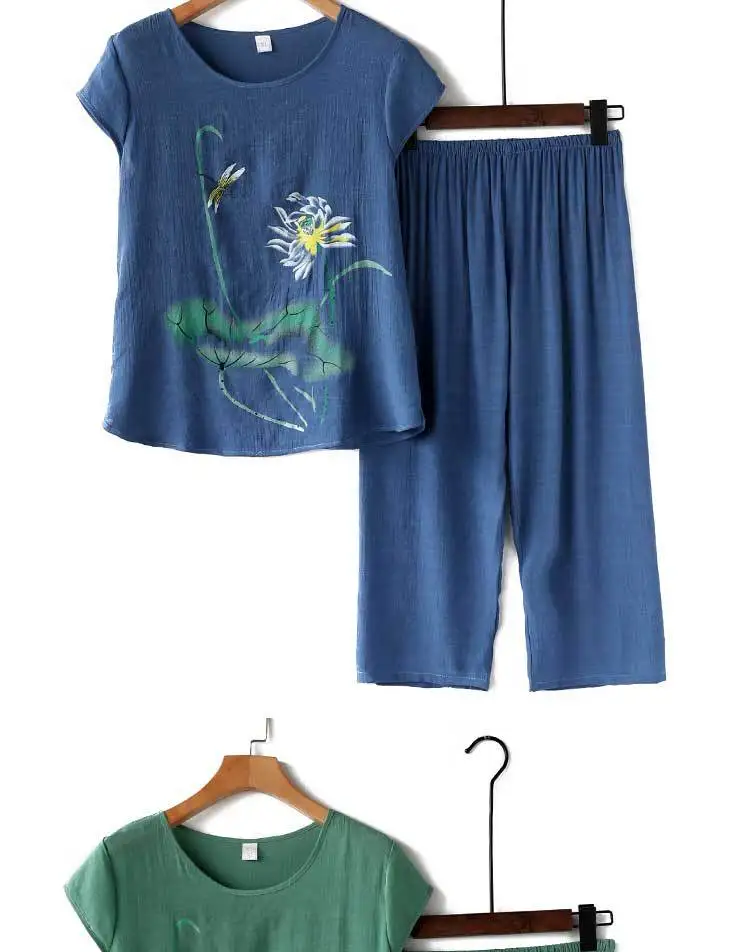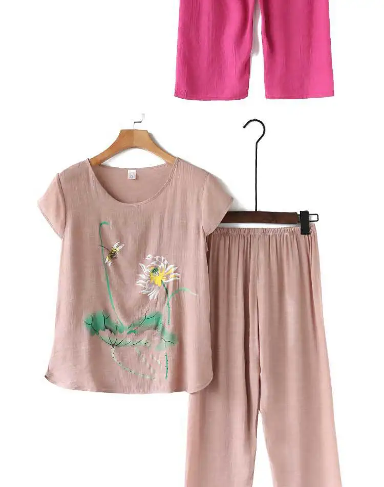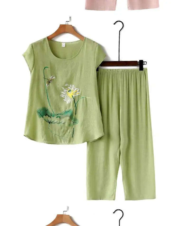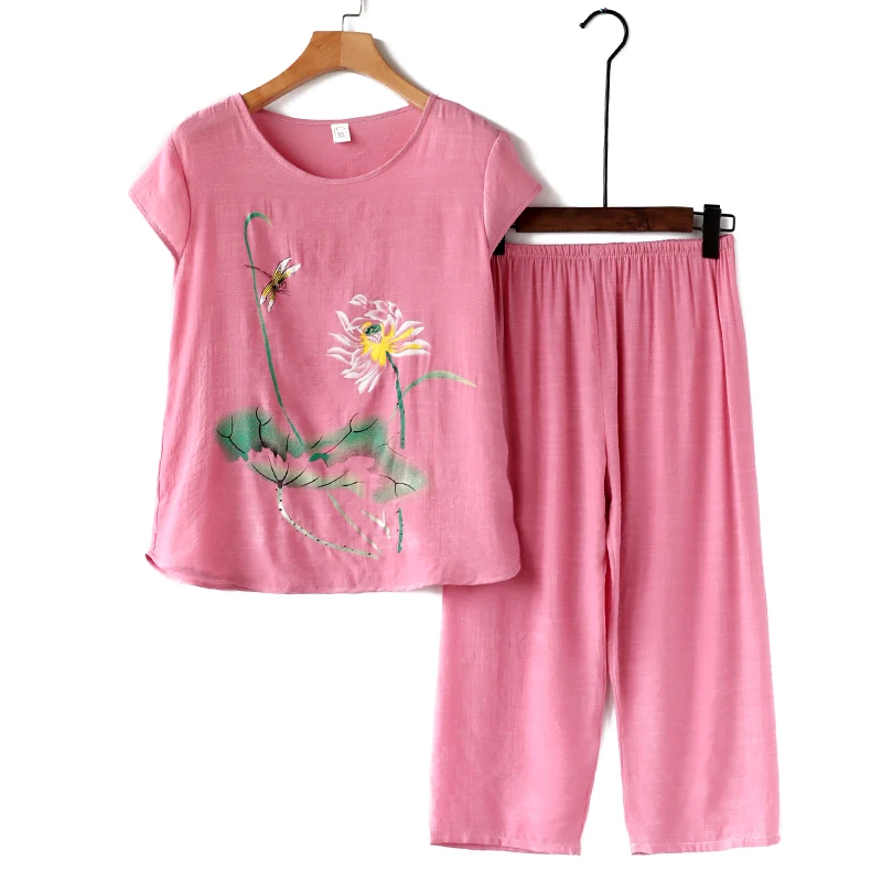 Летняя Пижама, новинка, одежда, повседневный женский пижамный комплект из 2 предметов, хлопковая льняная Пижама, костюм для женщин, одежда для сна, пижамы, домашняя одежда