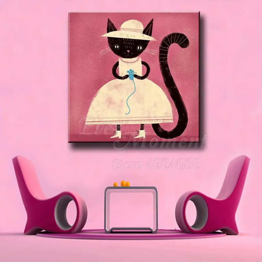 Алмазная картина с мультяшным котом и девочкой из смолы