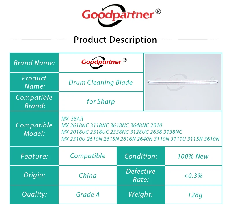 Лезвие для очистки барабана, 2X, для Sharp MX 2618, 3118, 3618, 3648, 2018, 2318, 2338, 3128, 2638, 3138, 2310, 2610, 2615, 2616, 2010