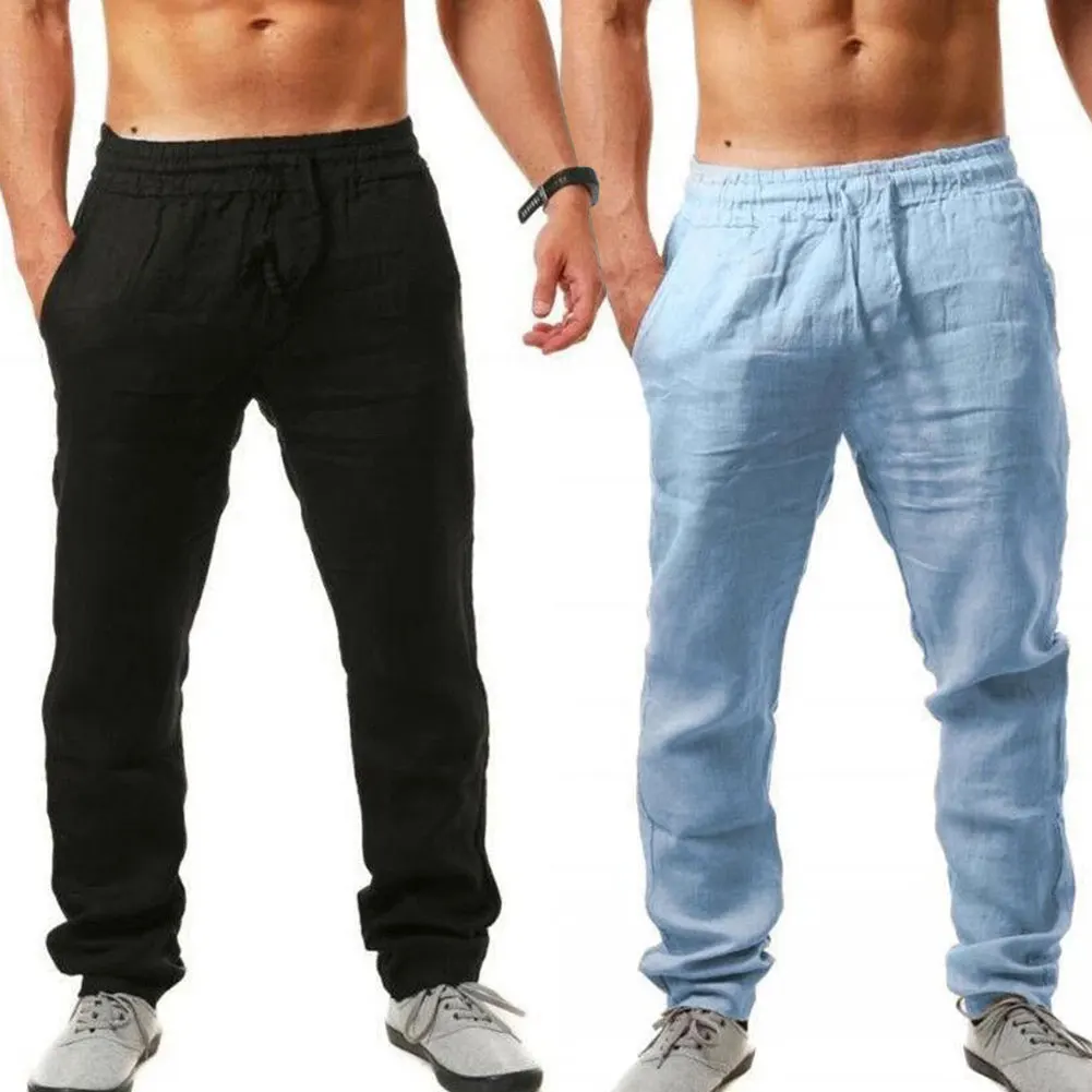 Брюки мужские однотонные повседневные с эластичной завязкой, Длинные дышащие штаны со средней посадкой, с карманами, для фитнеса, 2020