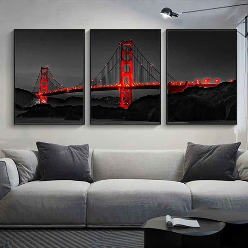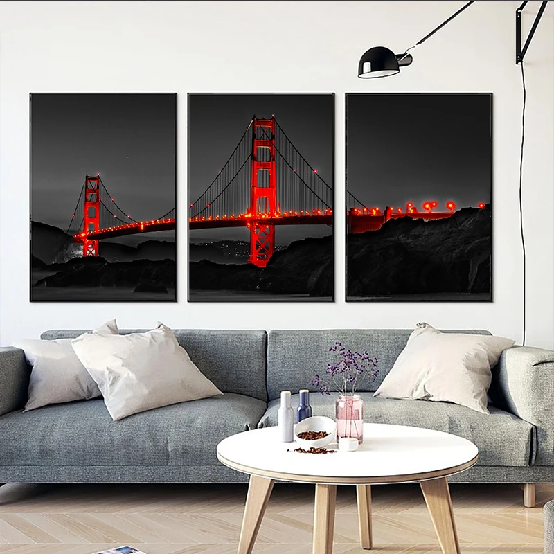 Современный минималистичный абстрактный черно-белый Рисунок Красный мост настенное искусство декоративная канва живопись гостиная спальня роспись домашний декор