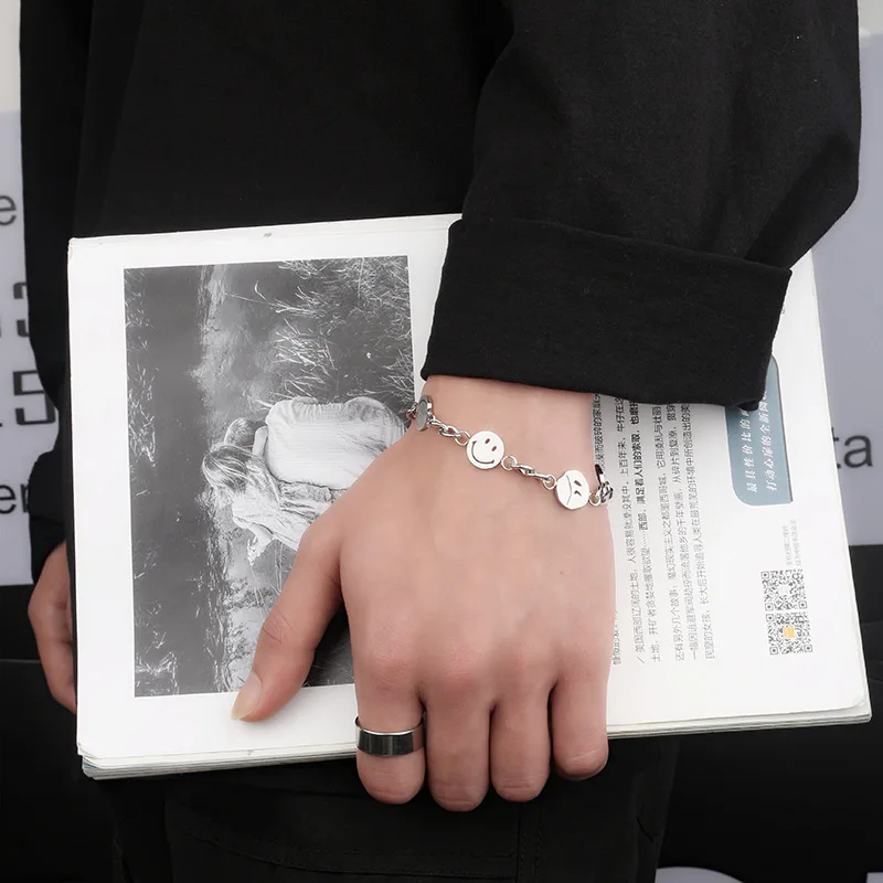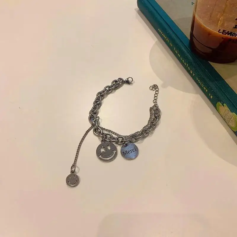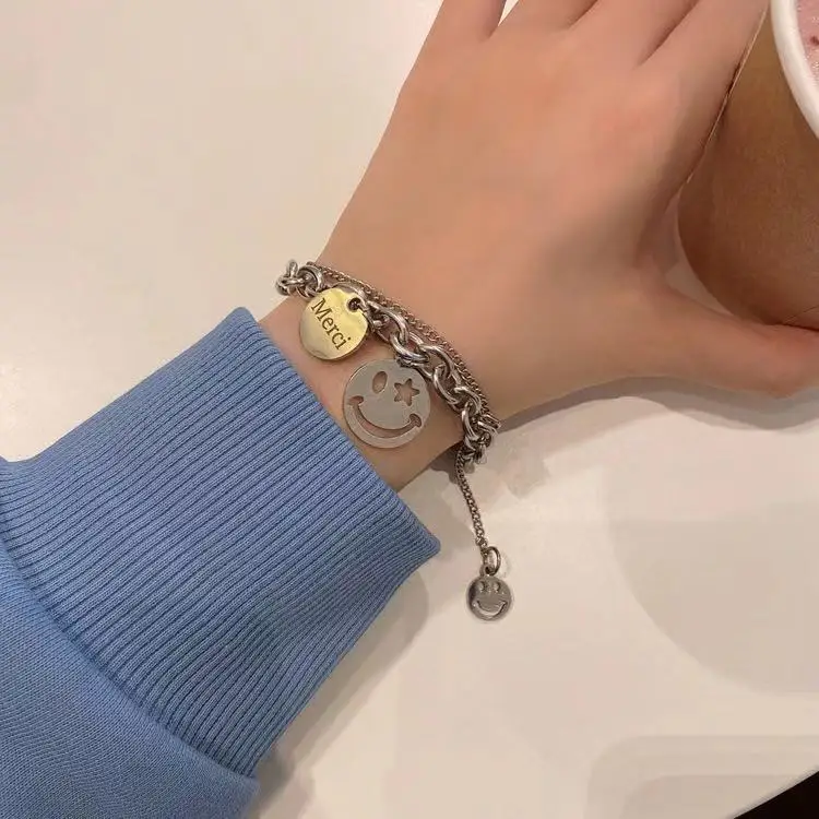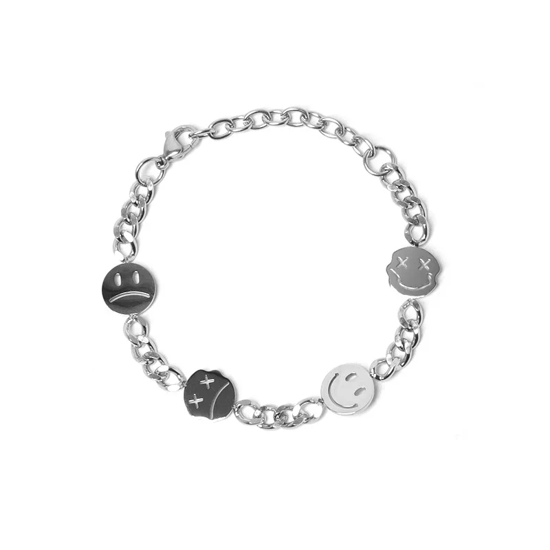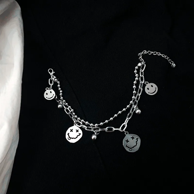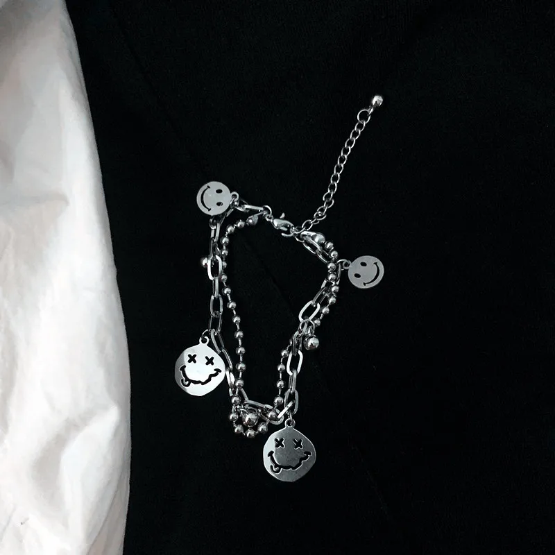 Двухслойный браслет с подвесками в виде смайликов, забавный браслет с бусинами, титановая сталь, не выцветает, ювелирные изделия для женщин и мужчин