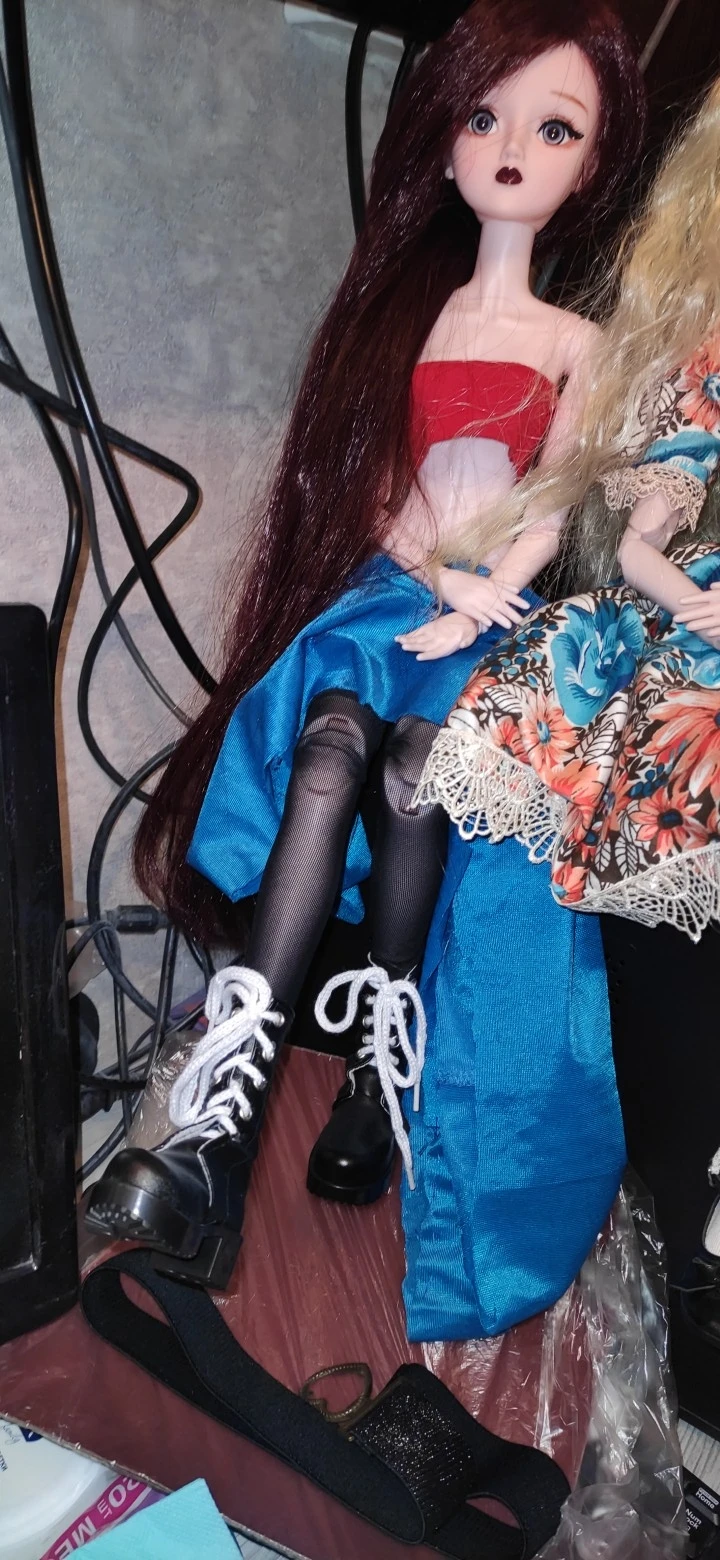 Неплохо, вы собираетесь оправдать мой BJD 1/3 (женское тело 62 см Mirodoll), но, по крайней мере, они того стоят, вам уже не подходит обувь, потому что у вас большие ноги, как у других BJD 1/4 (обычная обувь, потому что она не стоит того случайно, но эти ботинки входят и закрываются, Поэтому я доволен). У него осталось много милых вещей.
