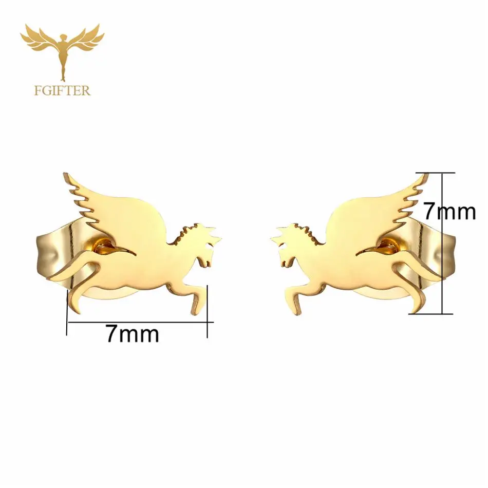 Серьги-гвоздики из нержавеющей стали, в виде лошадей с крыльями 12 Парижа, золото, 2021