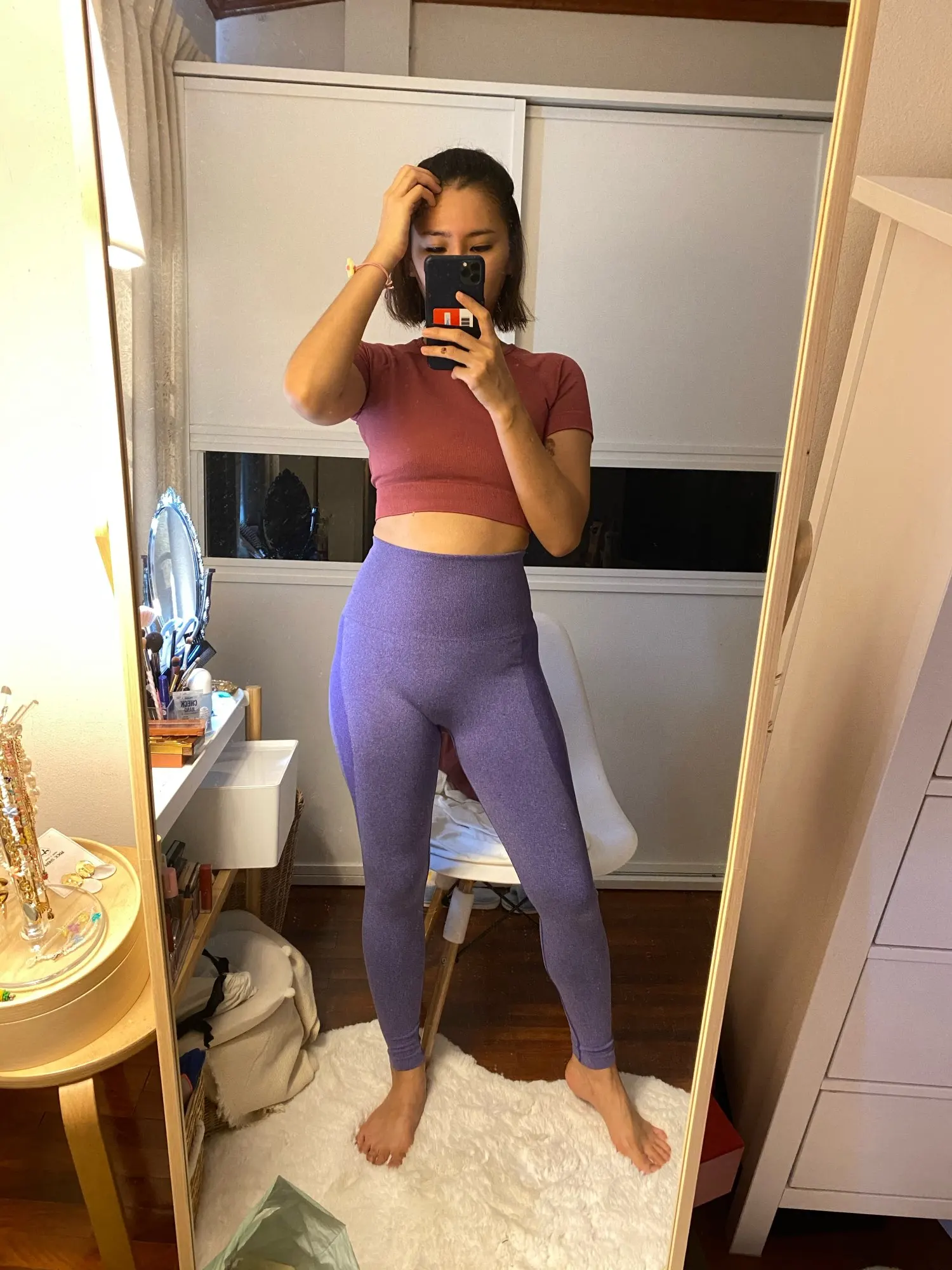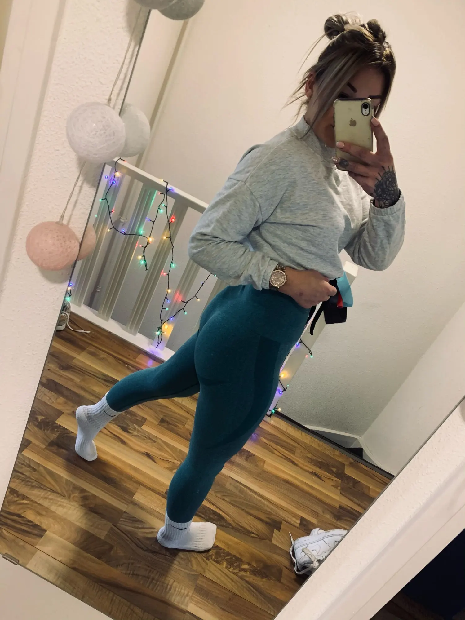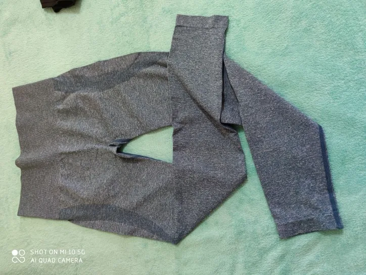 Материал на ощупь не является обычным полиамидным материалом .. Этот гораздо менее эластичный. Я не уверен, что тренировки будут в них чувствовать. Криволинейные линии, которые должны быть под попой, также выглядят немного неудобно. Я думаю, что они должны быть ближе друг к другу, тогда они подойдут и дополнят форму. На картинке, предоставленной магазином, у леди есть леггинсы, которые обернуты вокруг ее клея таким образом, что подчеркивает индивидуальную клейкость и делает их круглыми. Но поскольку материал не растягивается, он просто обертывает клеи, как бы юбка. Надеюсь, вы понимаете, что я имеете в виду.