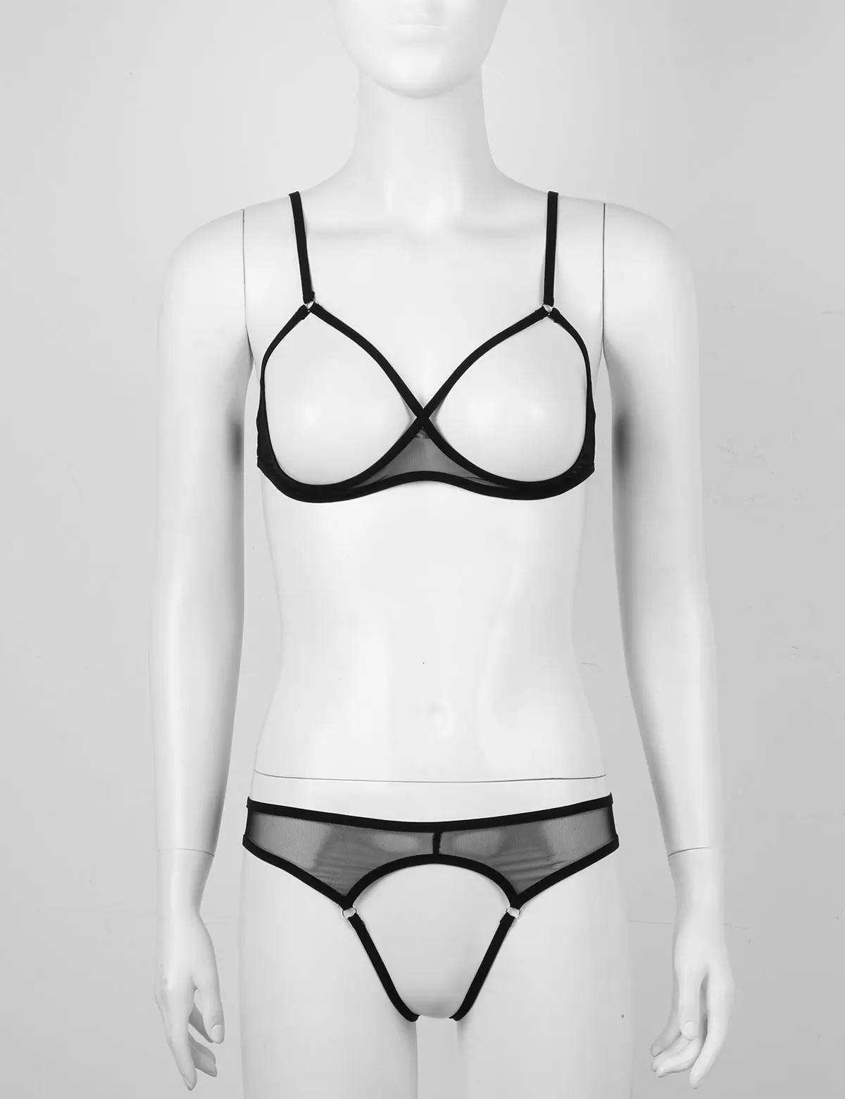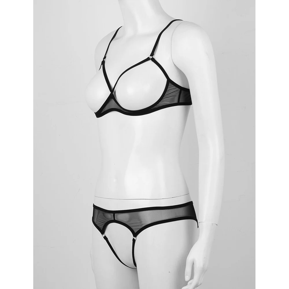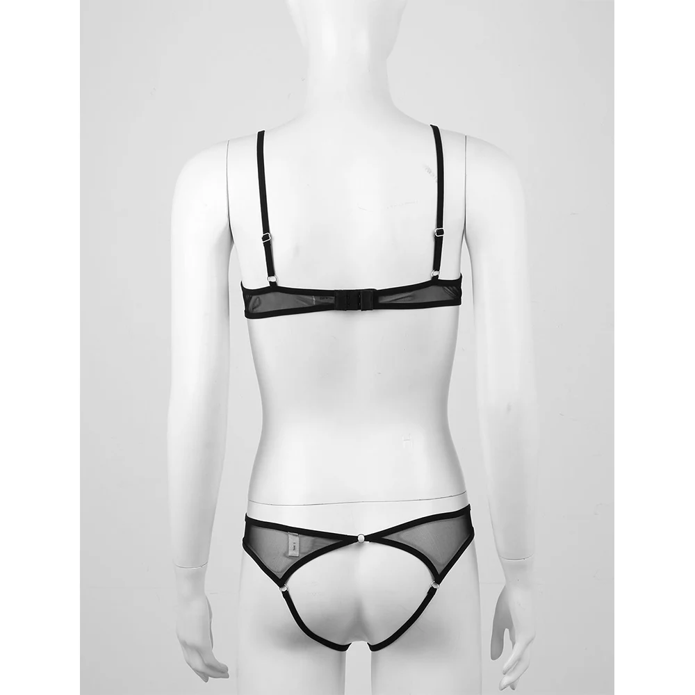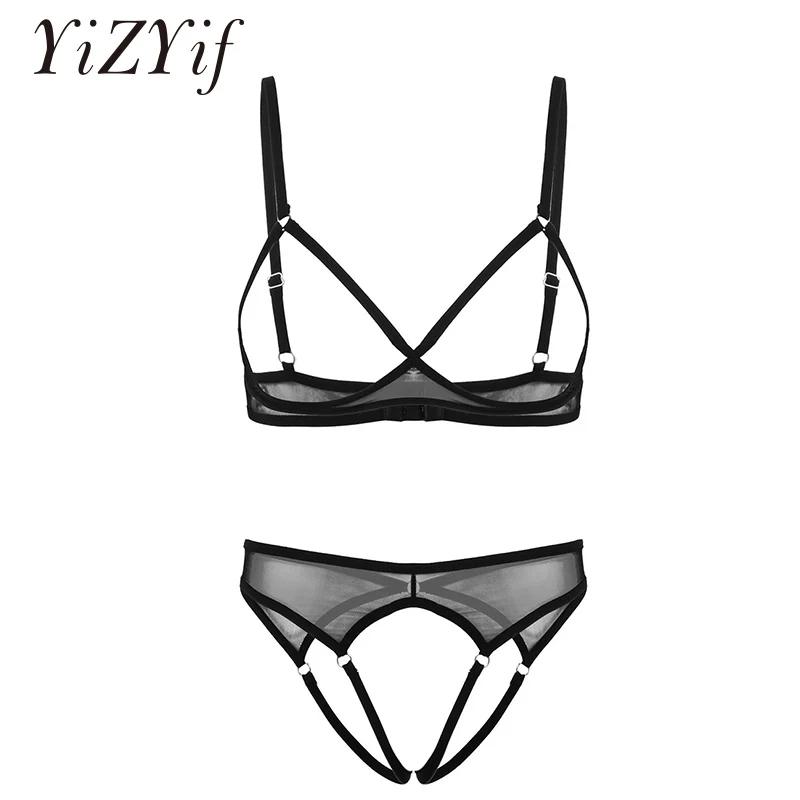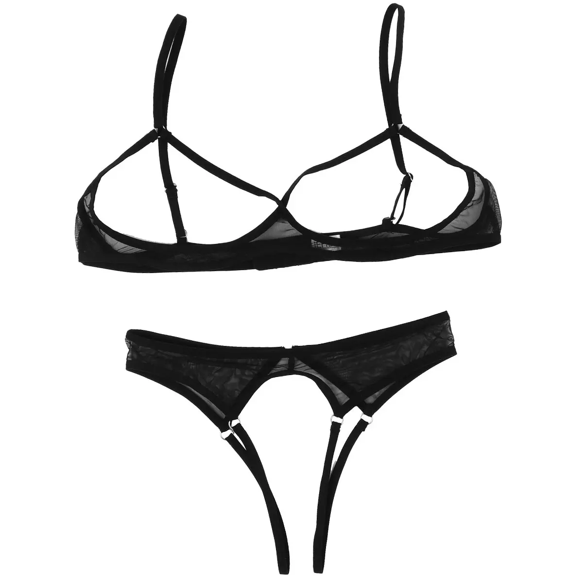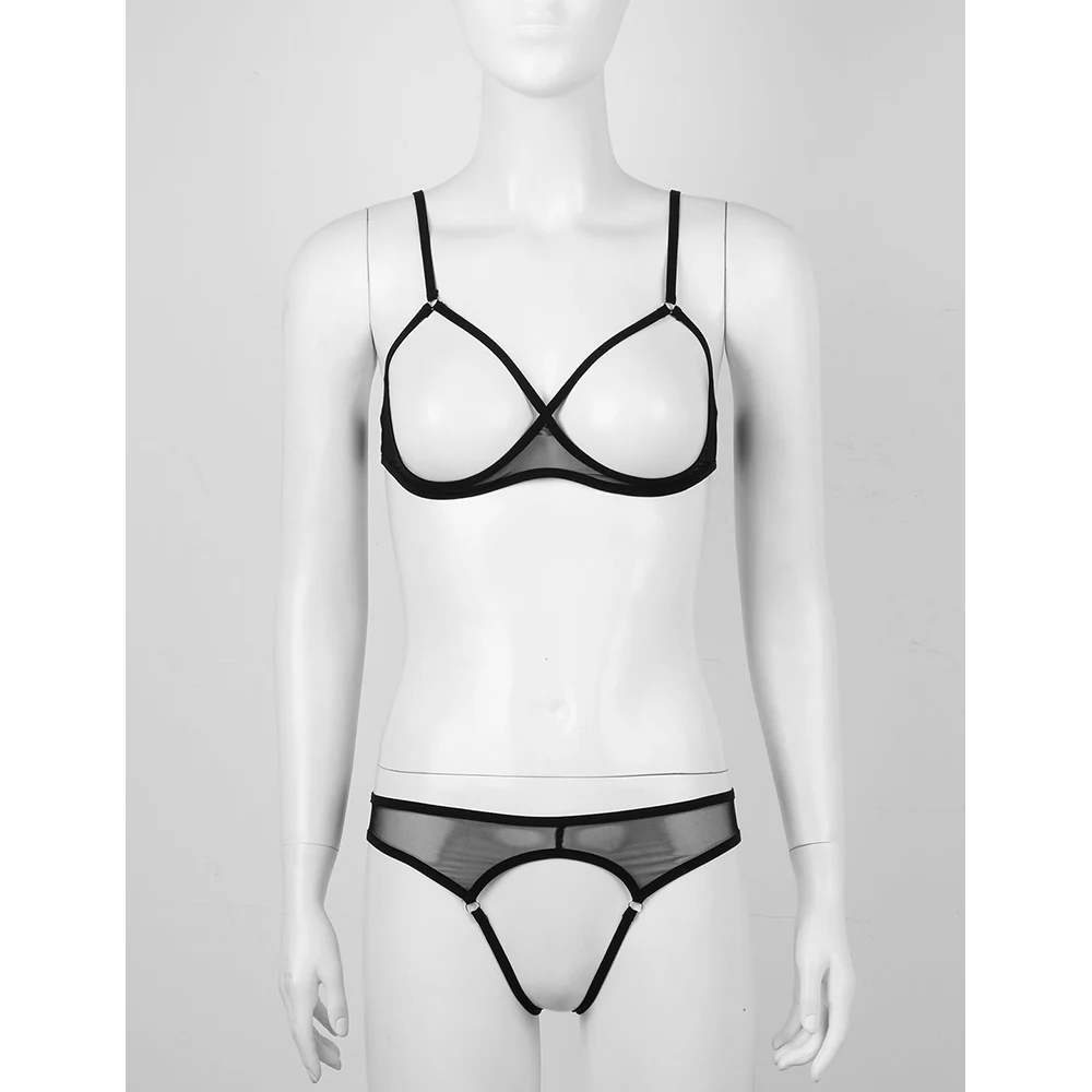 Женское нижнее белье, бюстгальтер с открытыми чашечками, топ с вырезами, трусики-стринги, стринги, прозрачное Сетчатое сексуальное нижнее белье, 2 шт.