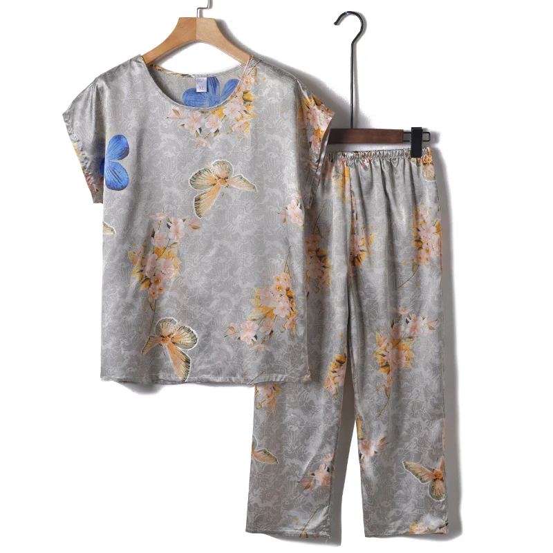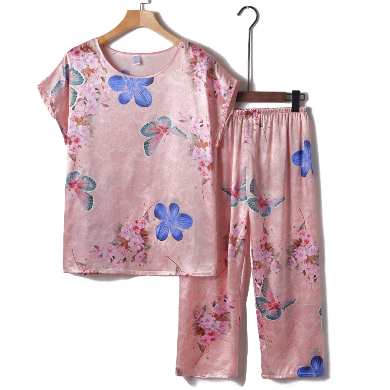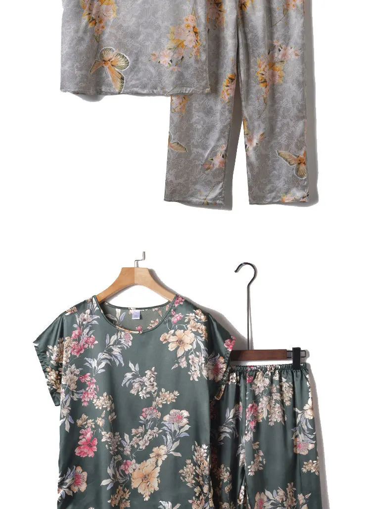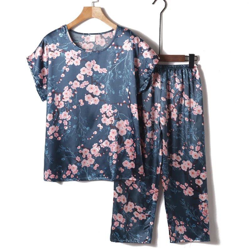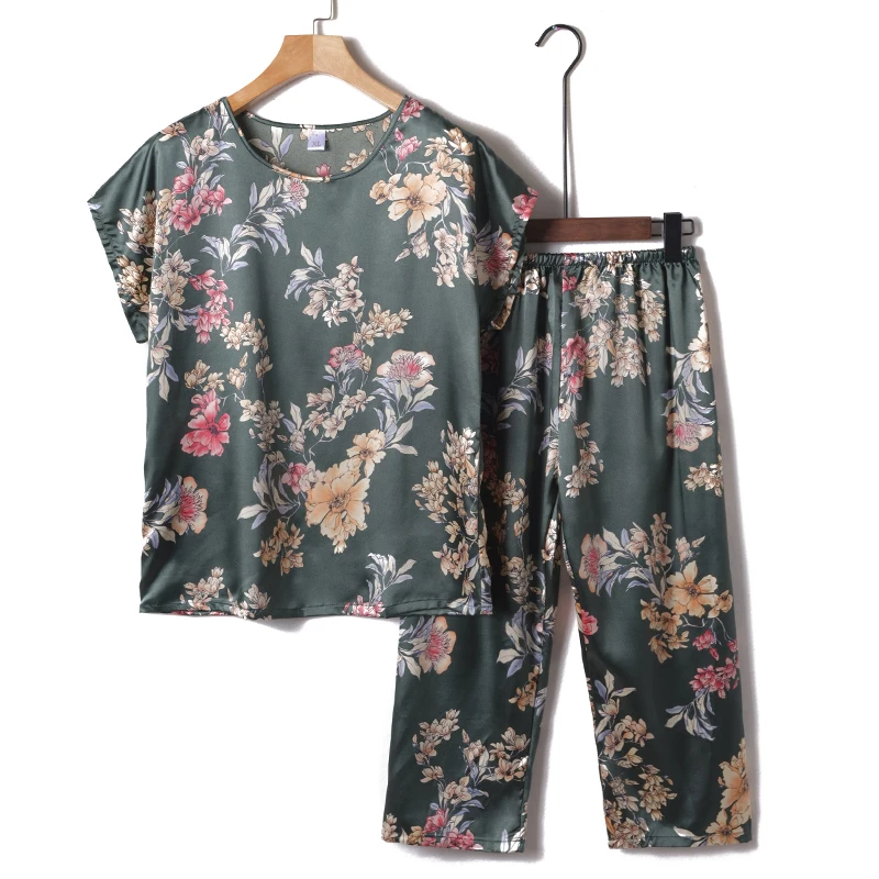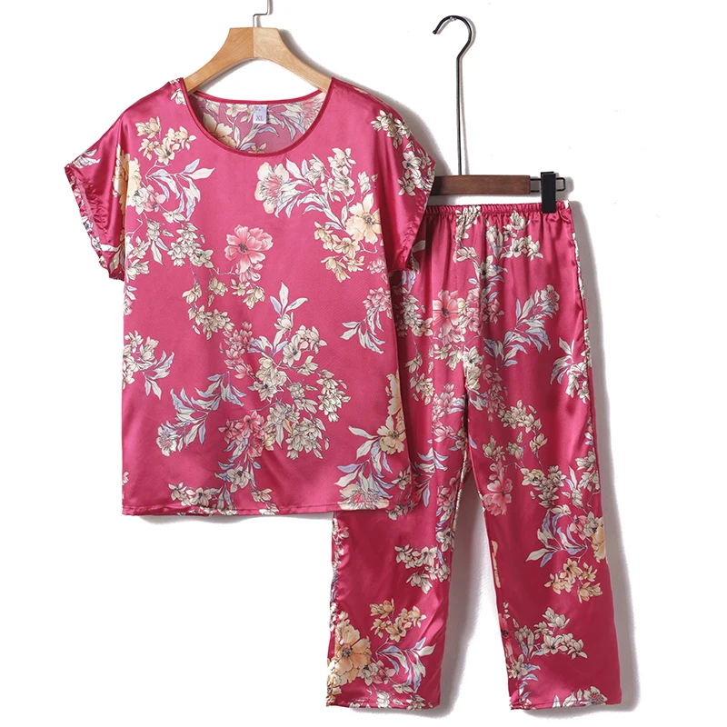 Пижамный комплект из 2 предметов, женская пижама, летняя одежда для сна, женская шелковая атласная пижама, Женская пижама с цветочным принтом, новинка, одежда