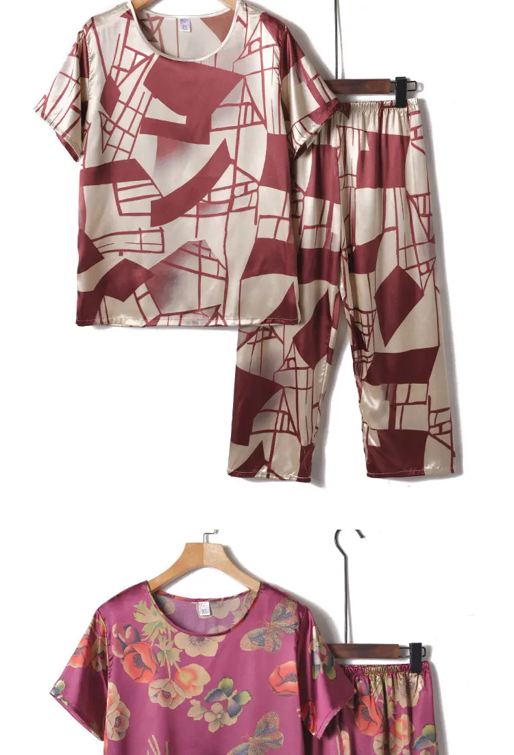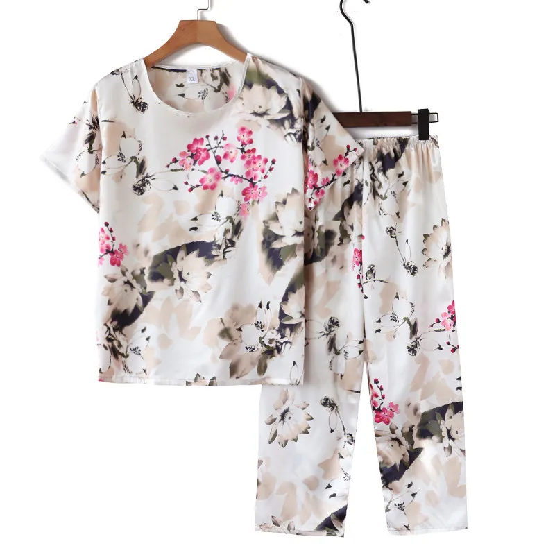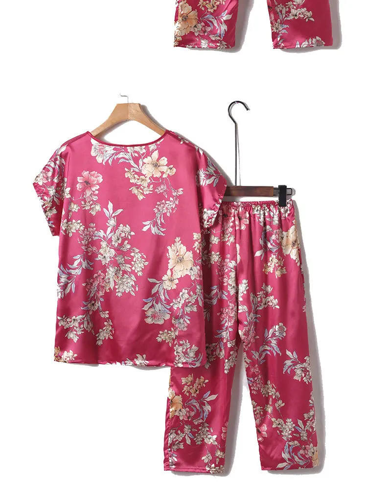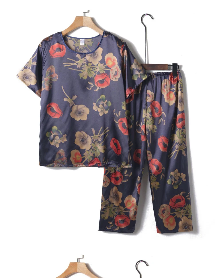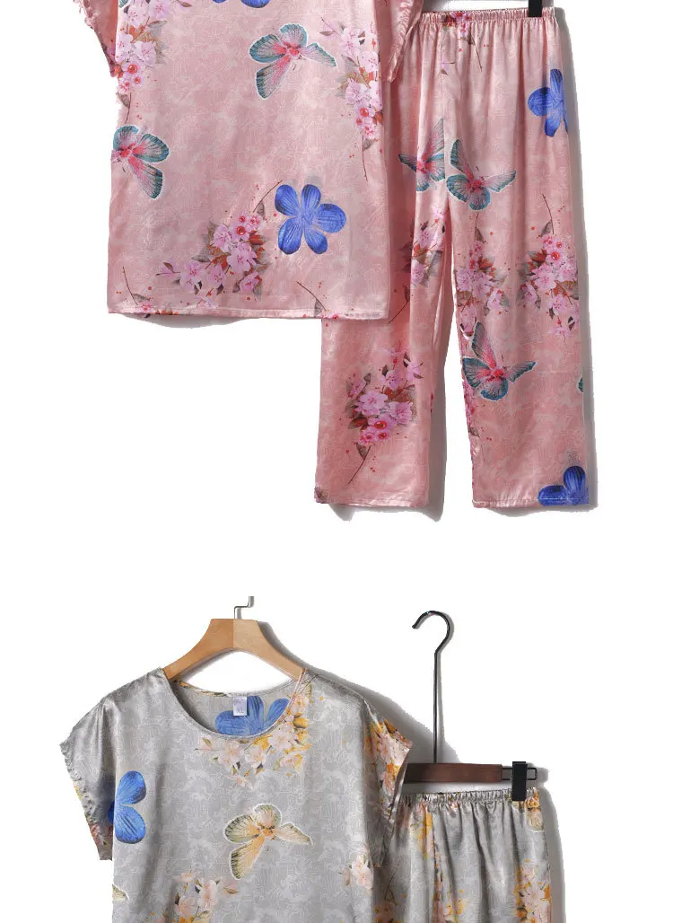 Пижамный комплект из 2 предметов, женская пижама, летняя одежда для сна, женская шелковая атласная пижама, Женская пижама с цветочным принтом, новинка, одежда