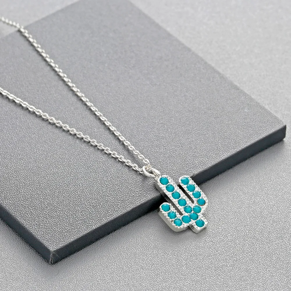 Ожерелье Chandler С КАКТУСОМ золотого цвета и синим фианитом, дерево кактуса 40 см, цепочка-чокеры, летняя бижутерия с растениями, фурнитура
