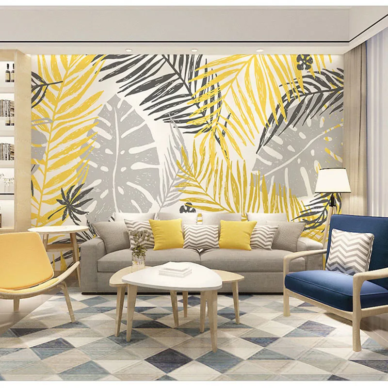 Креативные обои для спальни с фоном, скандинавские индивидуальные обои, Современная гостиная, диван, Настенная картина, лист, простота