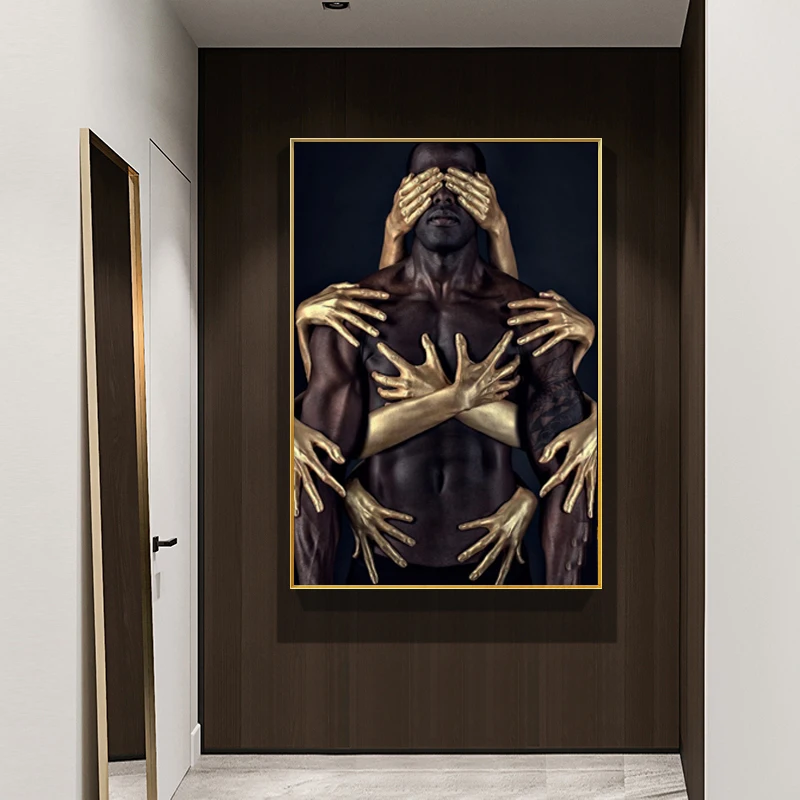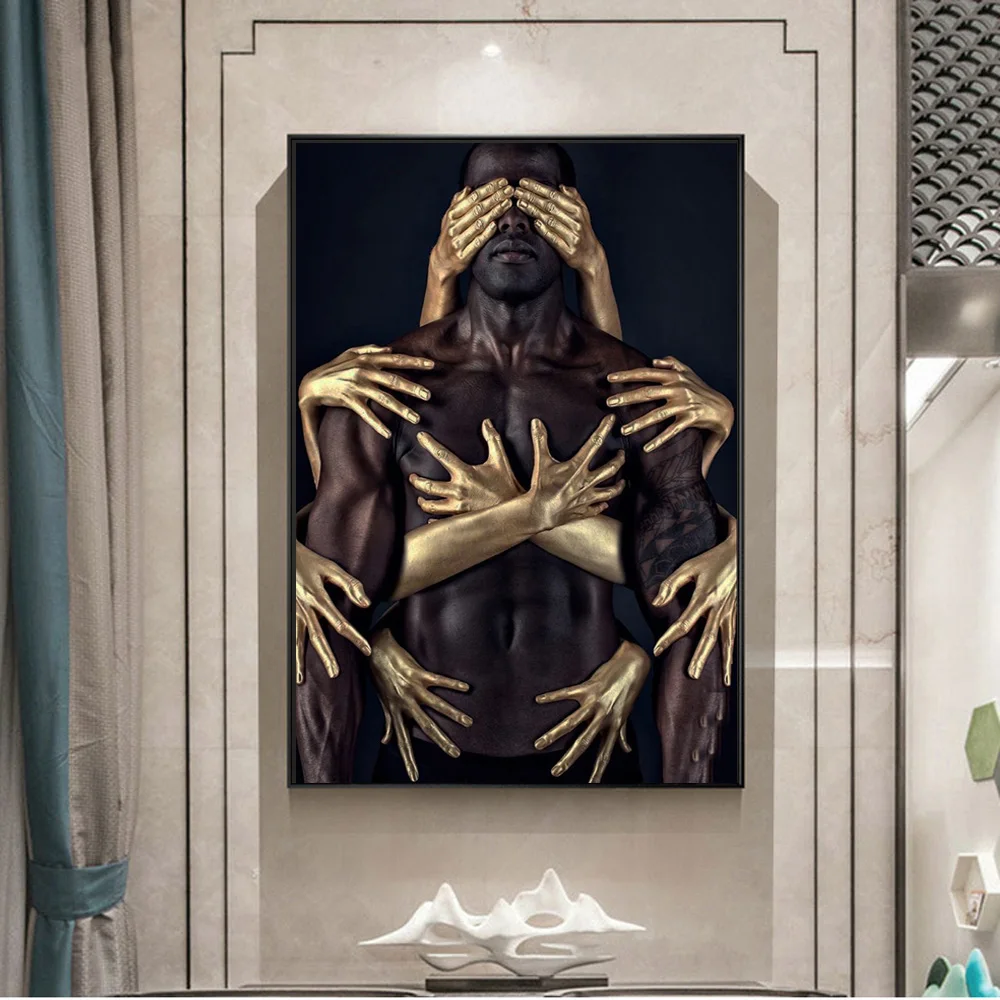 Картины на холсте в африканском стиле с обнаженными объятиями черного и золотого цвета, настенные картины художественные плакаты и принты мужчин и женщин для гостиной