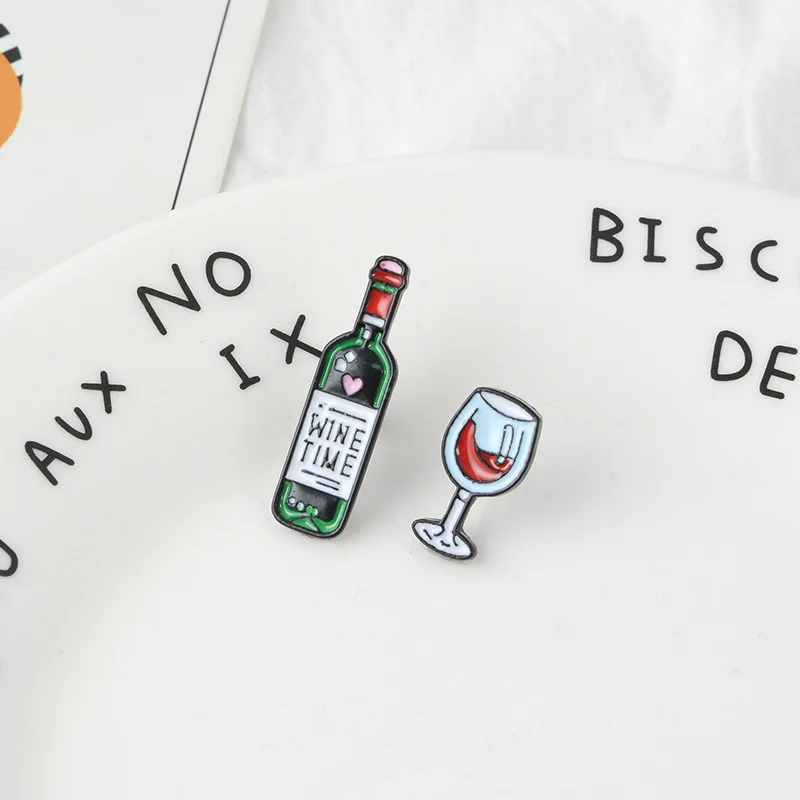 2 шт.компл. вино и стекло Эмаль Булавка мешочек для брошек одежды л...