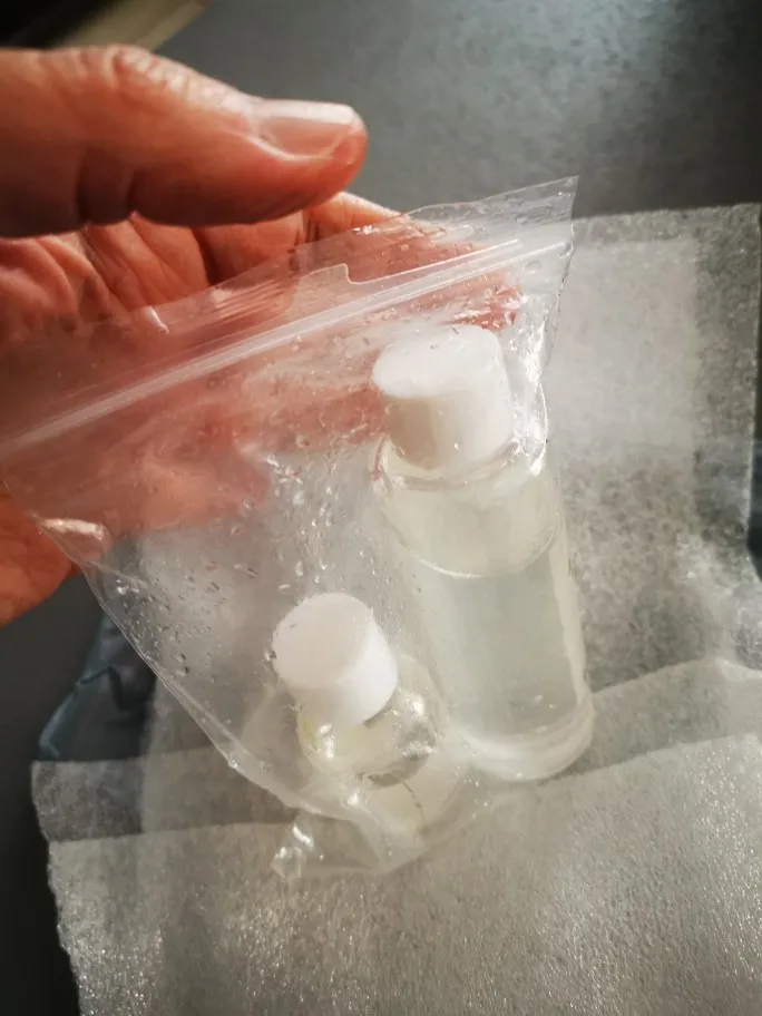 Одна из лодок прибыла открытой или сломанной, дело в том, что она капала, и вся сумка была полна жидкости.