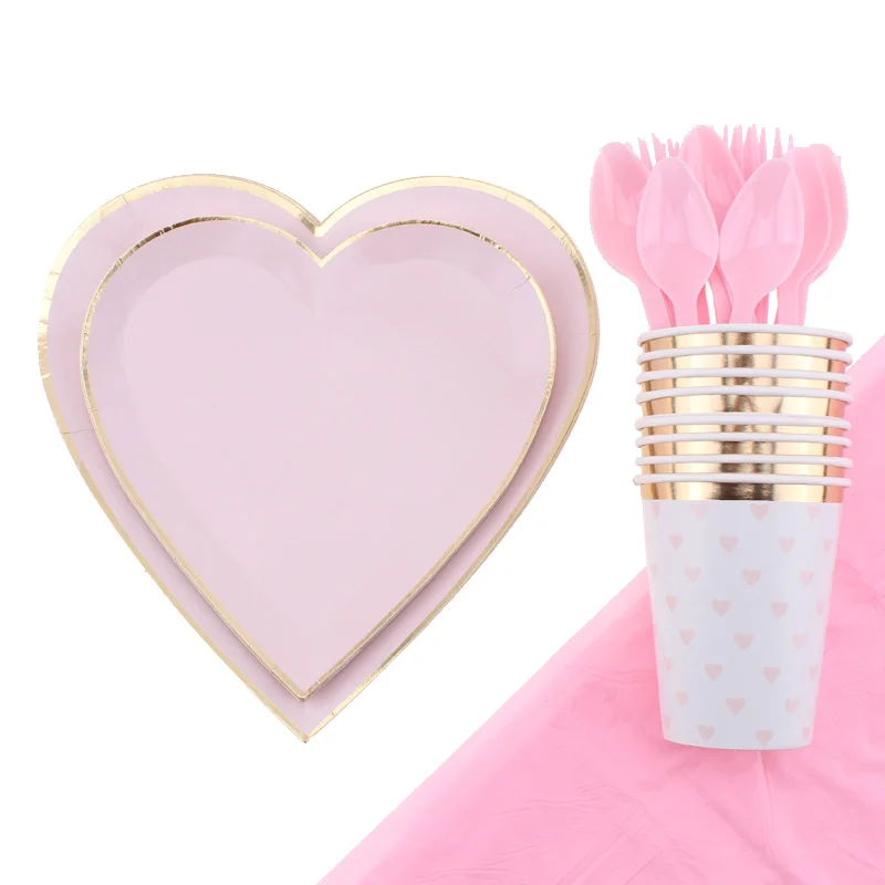 Украшение для дня рождения, свадебное украшение, одноразовая посуда, тарелки, скатерти, вилки и ложки, розовая серия, товары для детского праздника