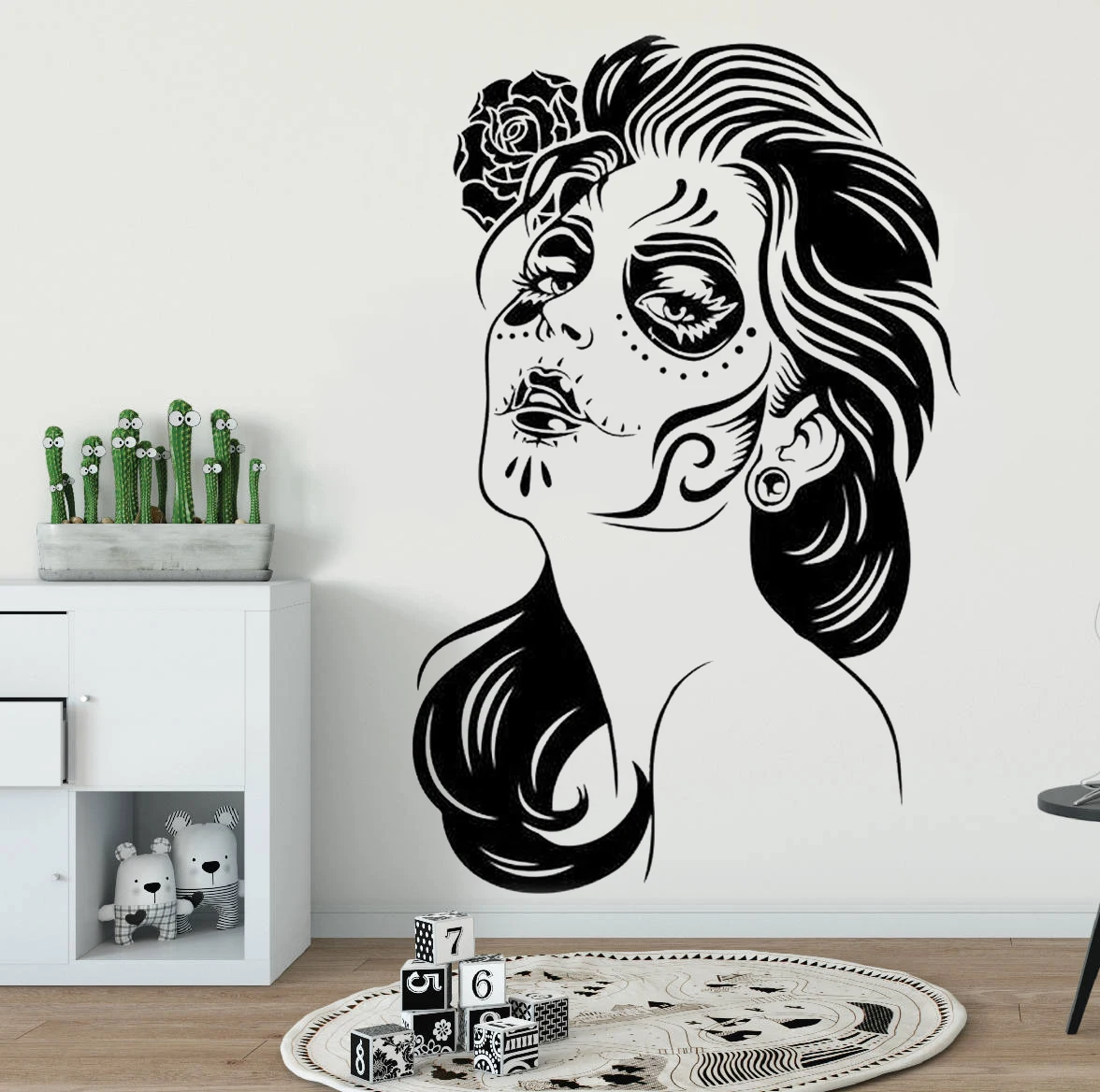Наклейка на стену с изображением женщины и лица Sugar Skull, Виниловая наклейка, Мексиканский макияж, украшения для интерьера дома, гостиной Декор для салона красоты HY1260