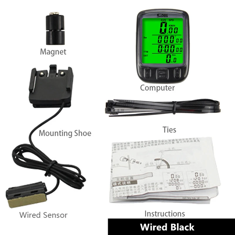 Компьютер велосипедный Sunding проводной беспроводной многофункциональный большой экран ЖК-дисплей черный свет дорожный велосипед Горный спидометр