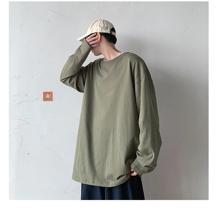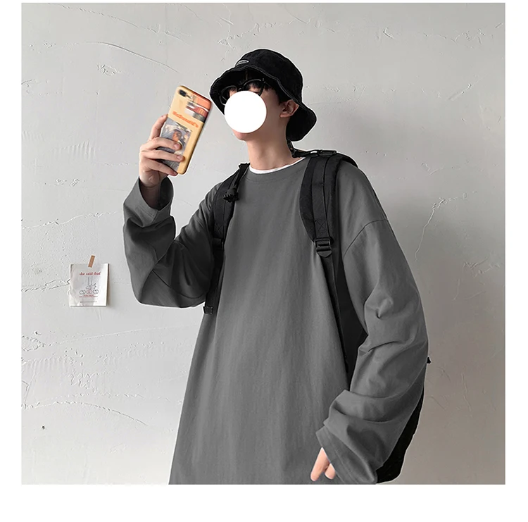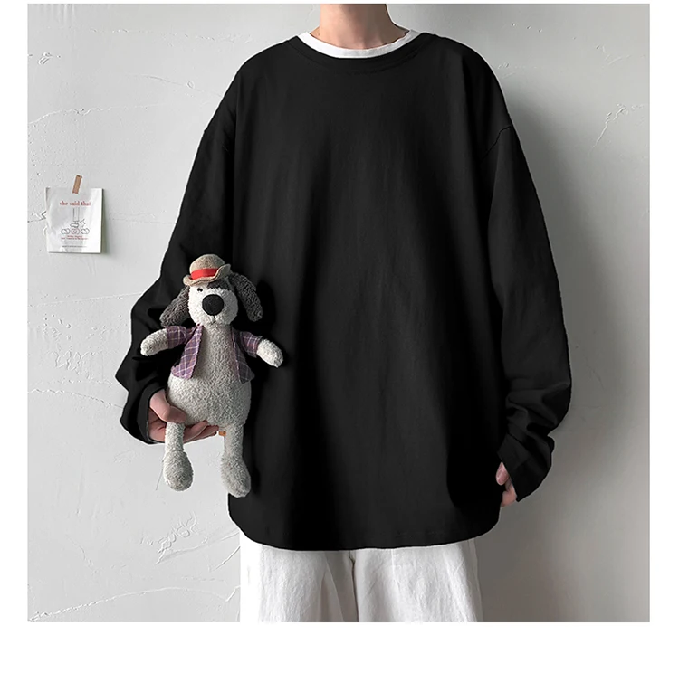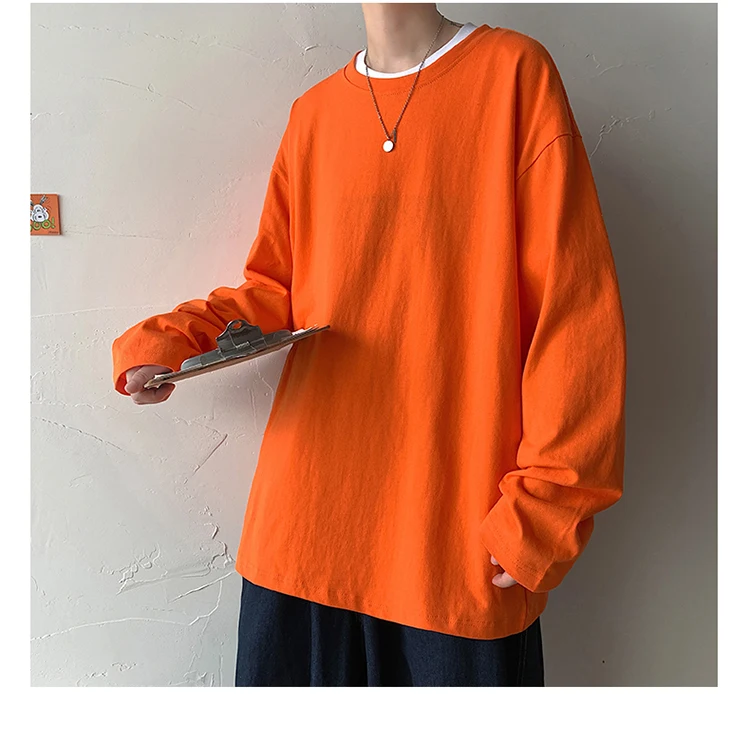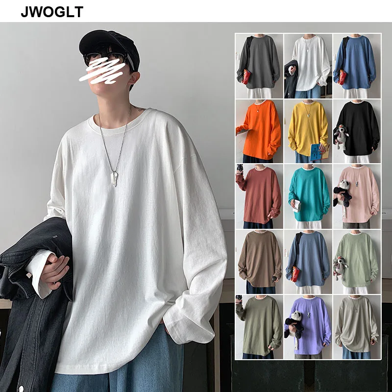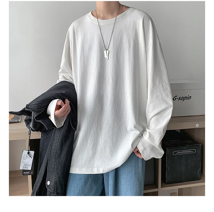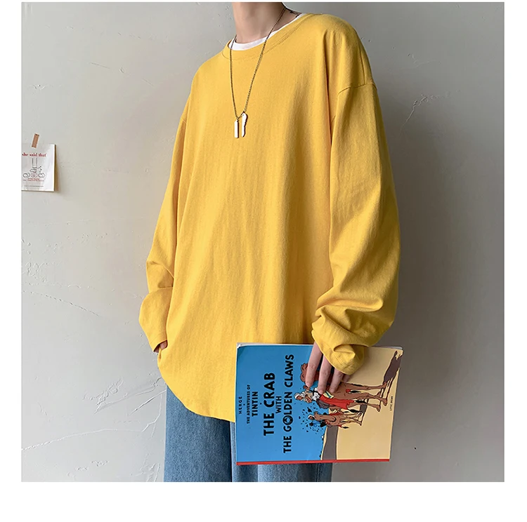 Футболка мужская Осенняя черная, белая, желтая, с длинными рукавами и круглым вырезом, большого размера, из 100% хлопка