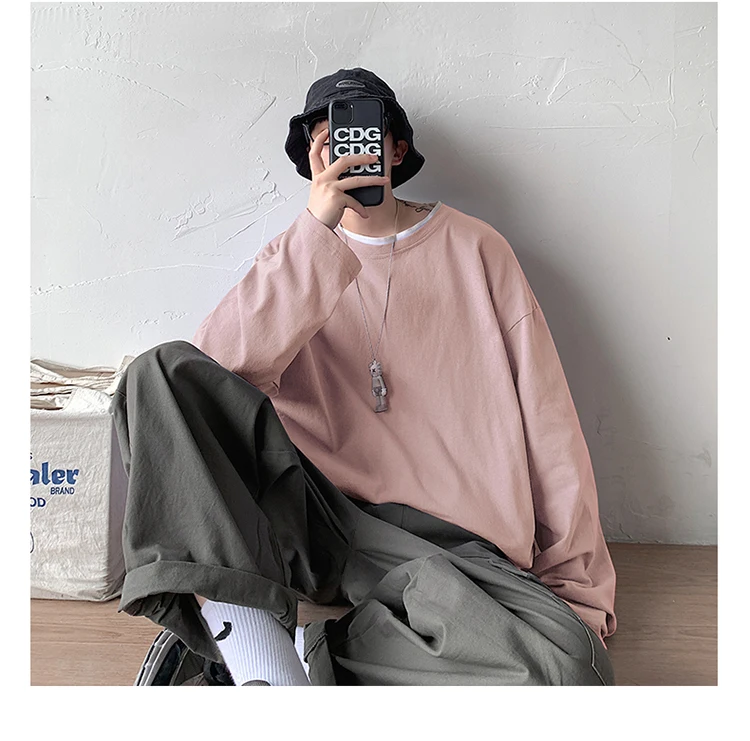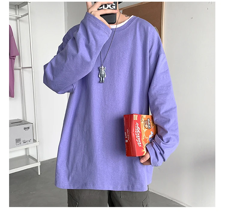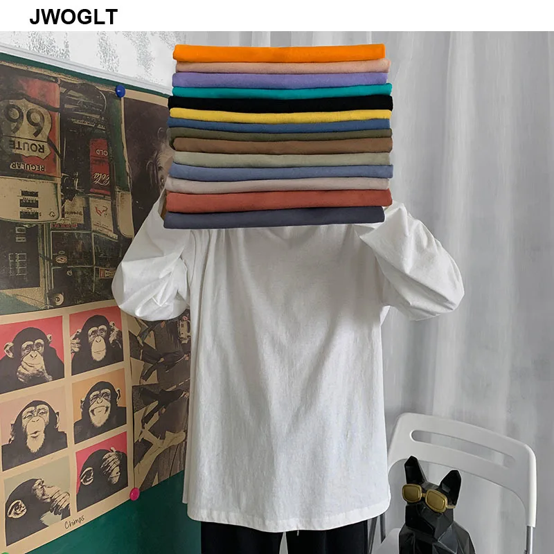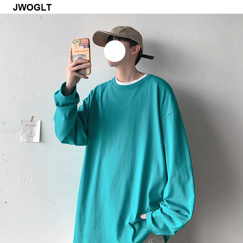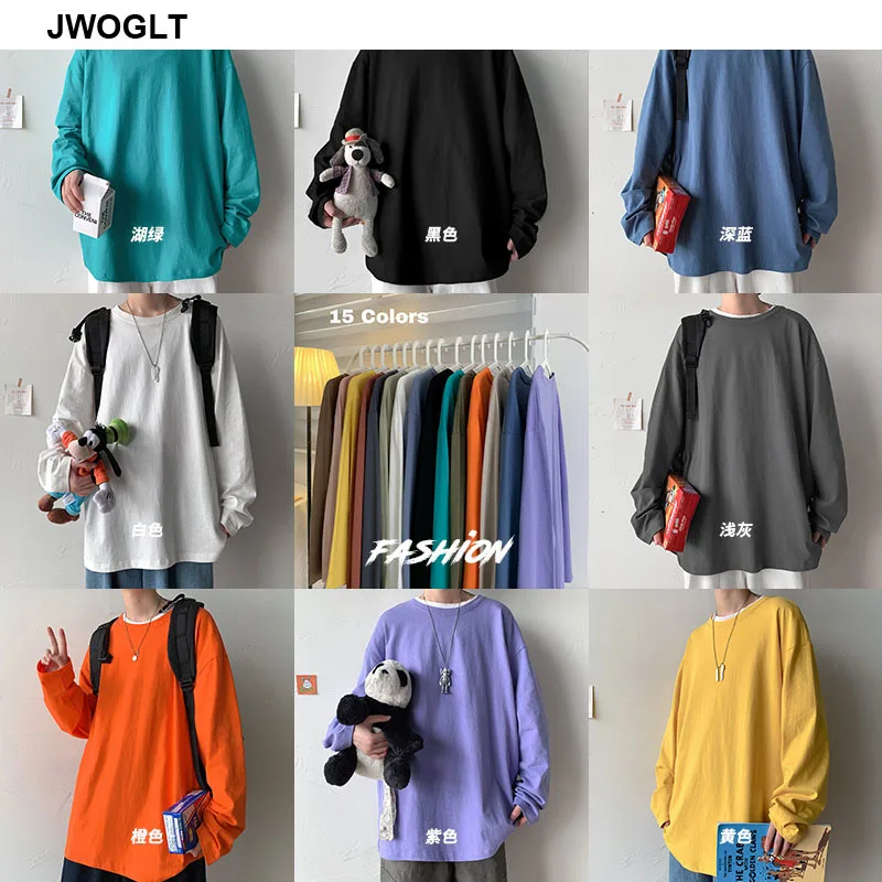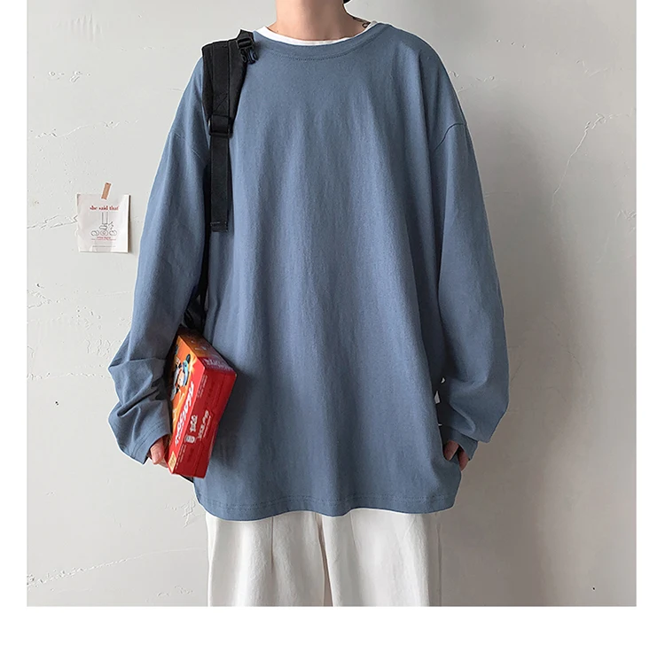 Футболка мужская Осенняя черная, белая, желтая, с длинными рукавами и круглым вырезом, большого размера, из 100% хлопка