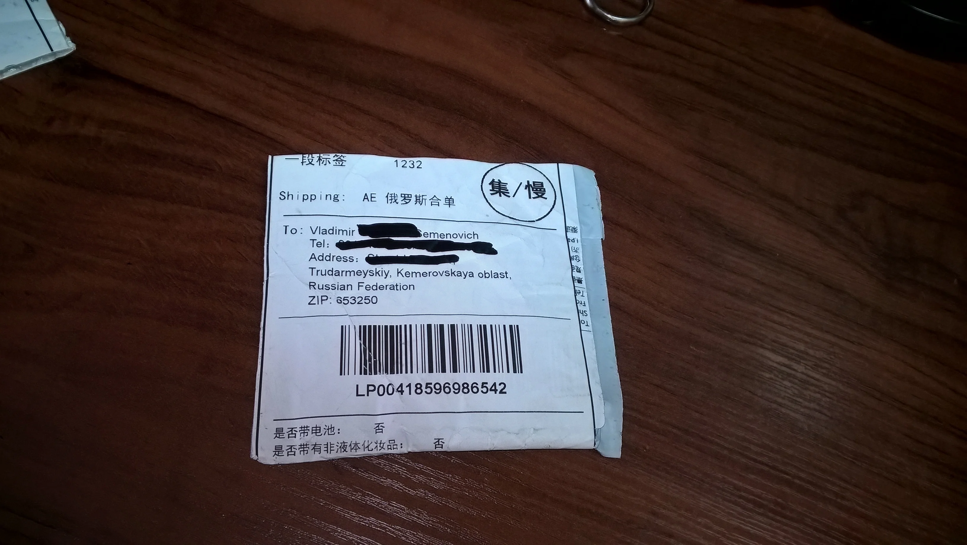 Страна: RU Доставка: Cainiao Super Economy 05.02.2021
