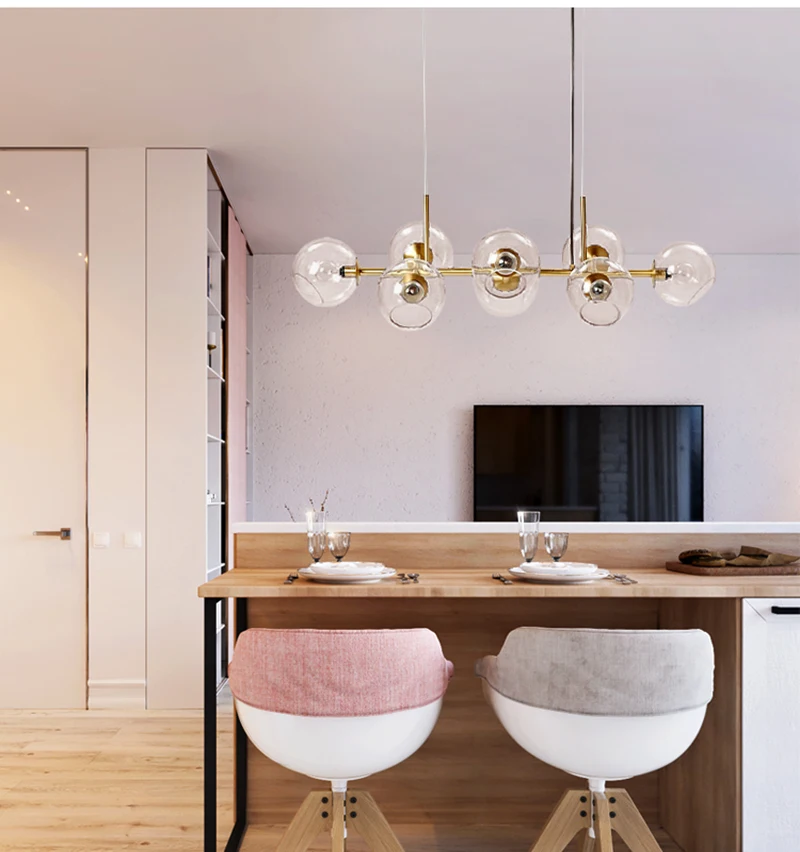Дизайн Nordic Стекло 8 шары подвесной светильник s для Гостиная столовой чехлы для бар Лофт черного и золотого цвета подвесной светильник для спальни светильник настенные светильники