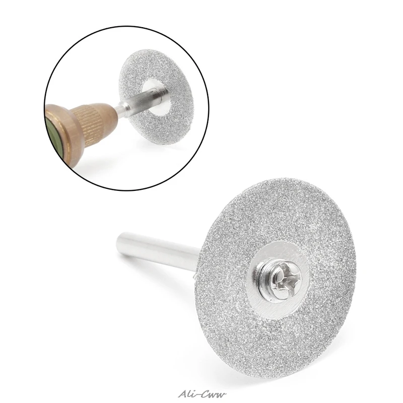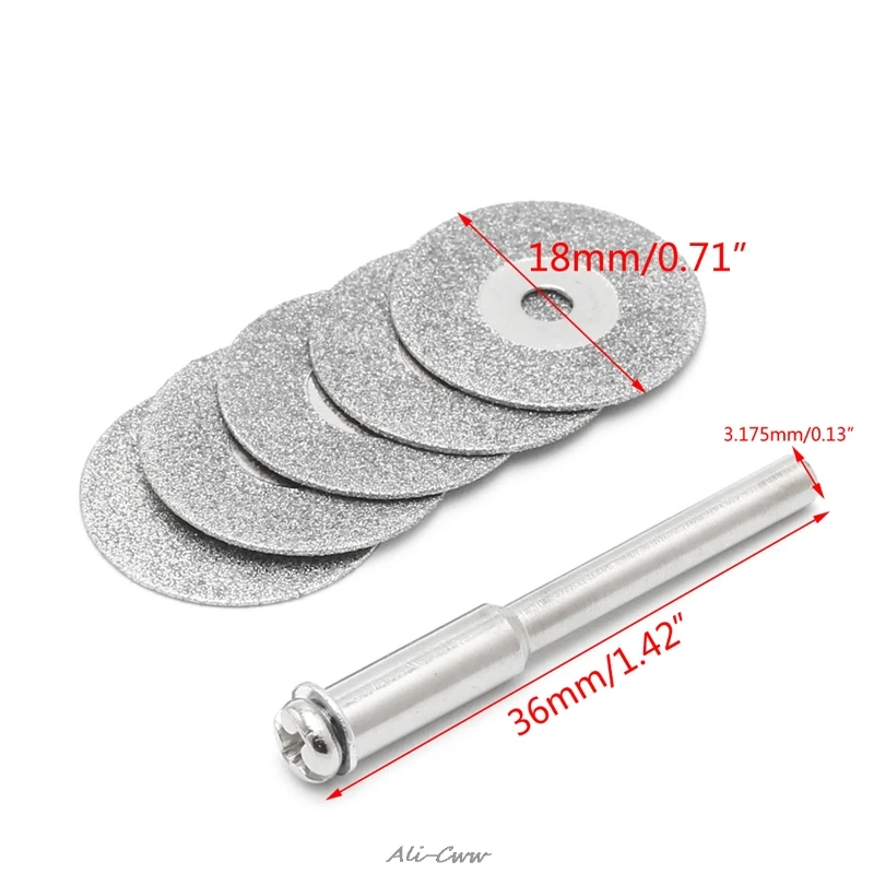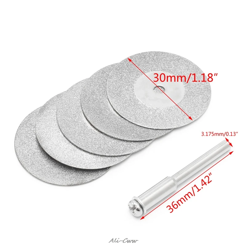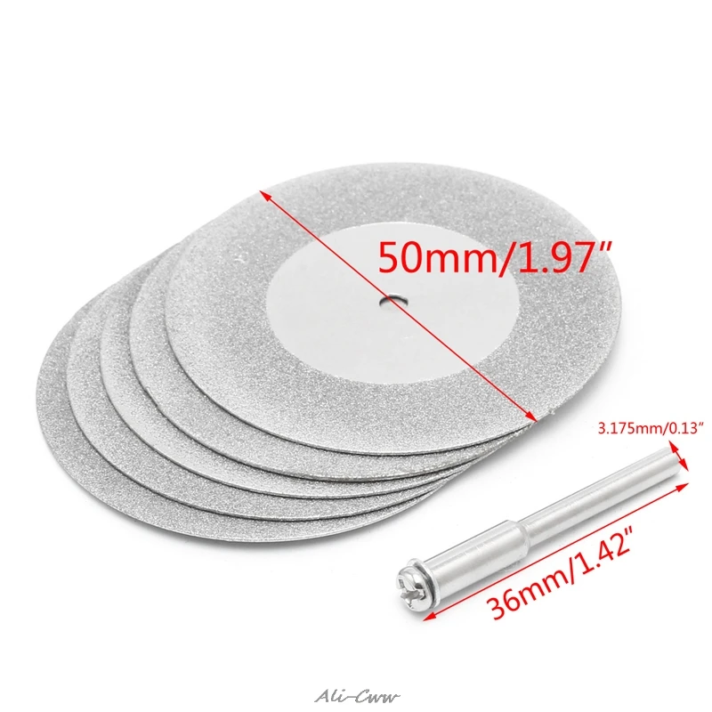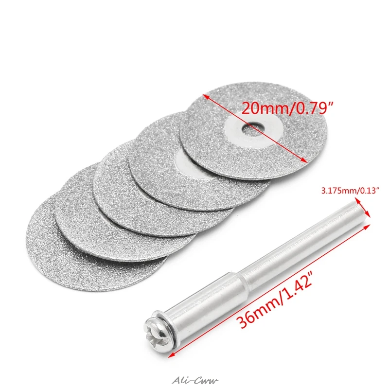 100% новый и высококачественныйЭти высокоскоростные отрезные диски с алмазным покрытием можно использовать с вращающимся инструментом для резки самых разных материалов.Резка дерева, стекла, пластика, металла, мрамора, каменной кладки, бетона и стекловолокна.Для использования в труднодоступных местах и для заподлицоРазмерыДиаметр хвостовика: отверстие 3,175 мм (1/8 дюйма)Длина хвостовика: 36 мм/1,42 дюймаДиаметр диска: 16 мм/0,63 дюймаМатериал: никелированная стальМаксимальная скорость: 20000 об/минПримечание:Добавьте немного воды для охлаждающей жидкости при использовании.