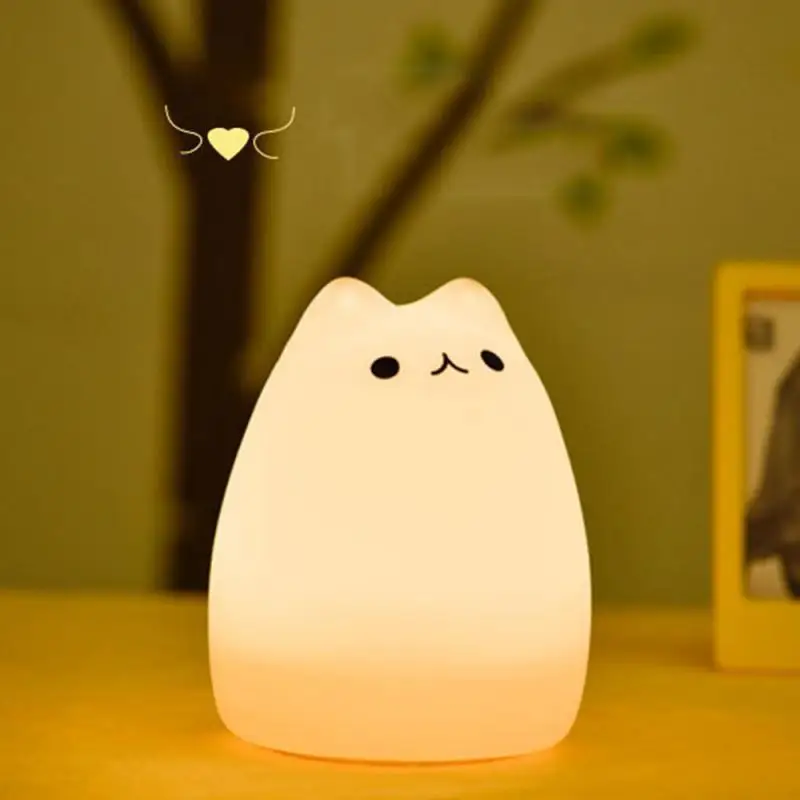 Силиконовый светодиодный ночник с питанием от USB, ночник с сенсорным датчиком, светодиодный ночник для детей, малышей, детей, 7 цветов, домашний светодиодный светильник в виде кошки