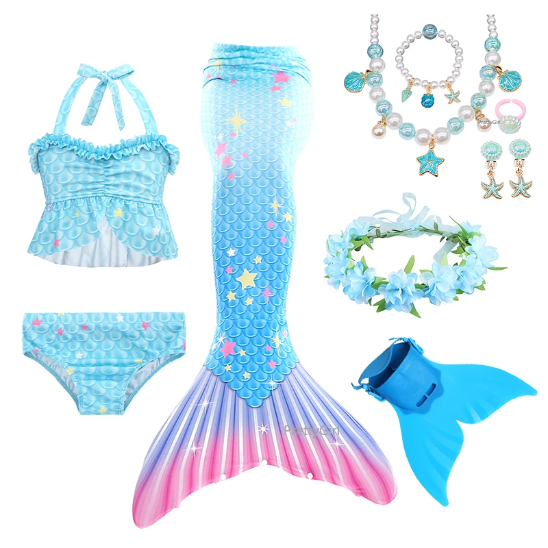 5TJ: 1 * платье с хвостом русалки + 1 * бюстгальтер + 1 * шорты + 1 * гирлянда + 1 * ожерелье 5 шт.: 1 * платье с хвостом русалки + 1 * бюстгальтер + 1 * шорты + 1 * гирлянда + 1 * Флиппер Monofin 10 шт.: 1 * платье с хвостом русалки + 1 * бюстгальтер + 1 * шорты + 1 * гирлянда + 1 * ластик монофин + 1 * ожерелье + 1 * браслет + 1 * кольцо + 1 пара зажимов для ушей обратите внимание: мы можем увидеть красивый трехмерный эффект на фотографиях, потому что маленькая девочка носила купальник и хвост С флиппером. Поэтому мы рекомендуем заказать Флиппер вместе. Также Флиппер может помочь плавать, повысить прочность ног и поддерживать баланс тела.