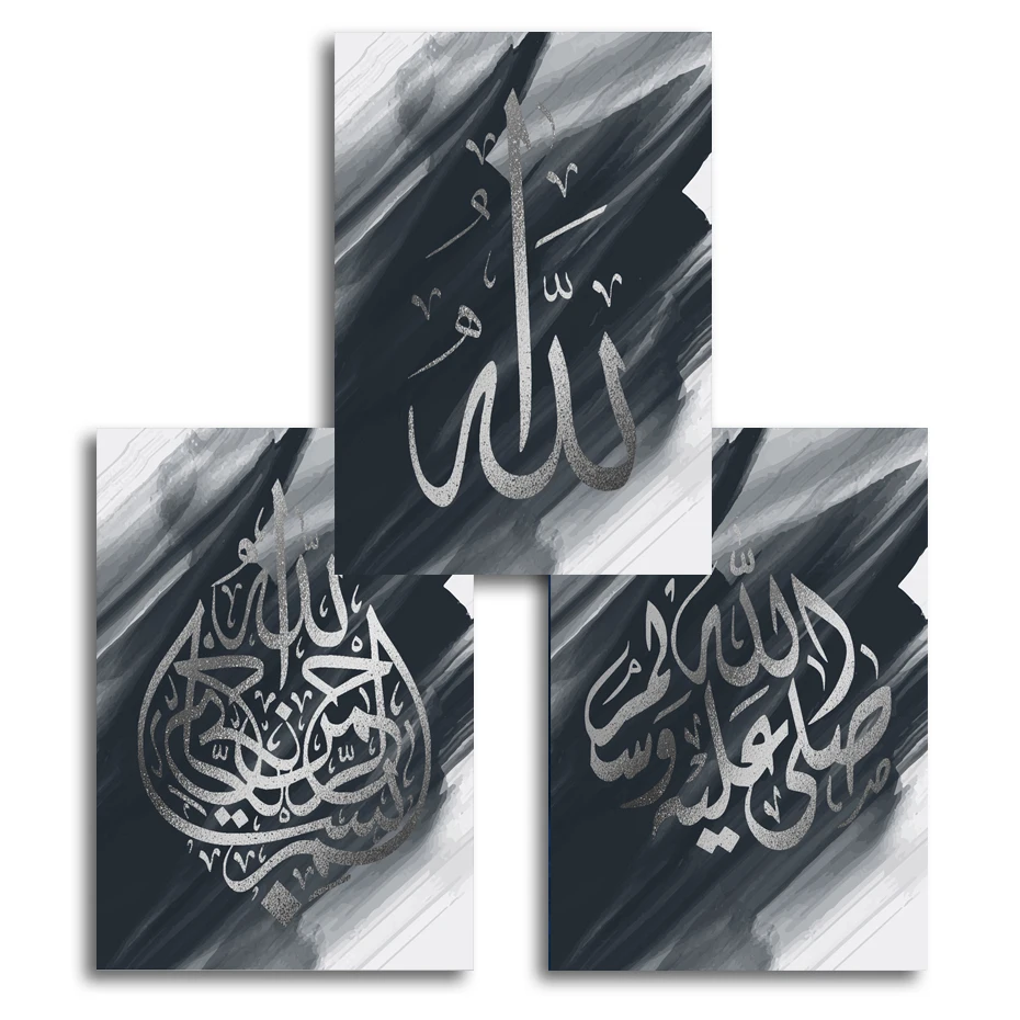 Серебряный Аллах исламские настенные картины на холсте настенные печатные картины художественные Плакаты для гостиной Рамадан ИД Декор