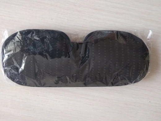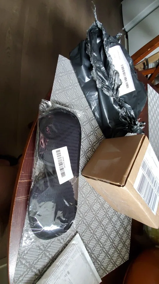 заказ пришёл через месяц вместе с другими заказами. товар качественный, свет не пропускает даже если фонариком светить на лицо. маска на громоздкая, тонкая. регулируется липучкой, на нос есть ткань, чтобы свет не. попадал через щель
