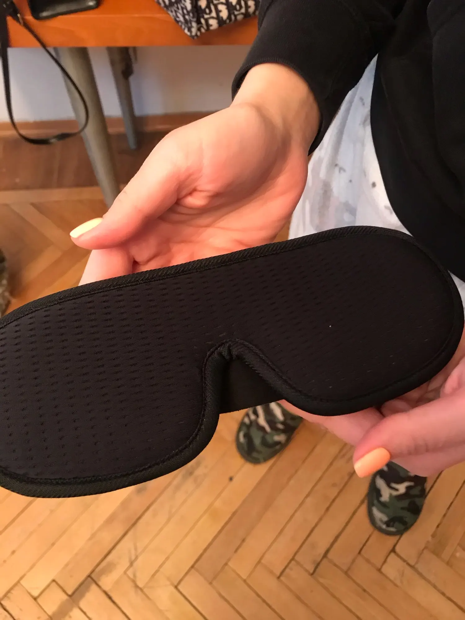 Маска удобная, свет хорошо закрывает. Единственное, ткань сверху - обычный трикотаж в дырочку, думала, будет что-то попушистее, типа велюра. На функциональность не влияет.