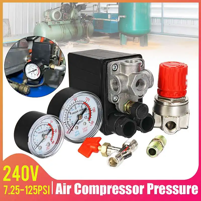 240 В AC Регулятор Сверхмощный воздушный компрессор насос переключатель контроля давления 4 порта воздушный насос регулирующий клапан 7,25-125 PSI с манометром