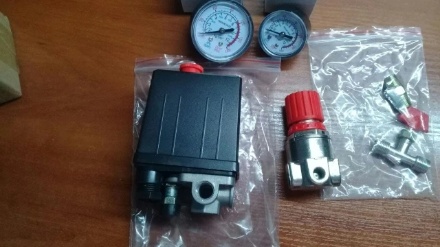 Посылка пришла быстро, примерно за 5 дней. Все в целости, но качество материалов хромает... Пластик тонкий и хрупкий, метал салюминий, мягкий. На компрессор не ставил, надеюсь, что будет работать. Магазину процветания