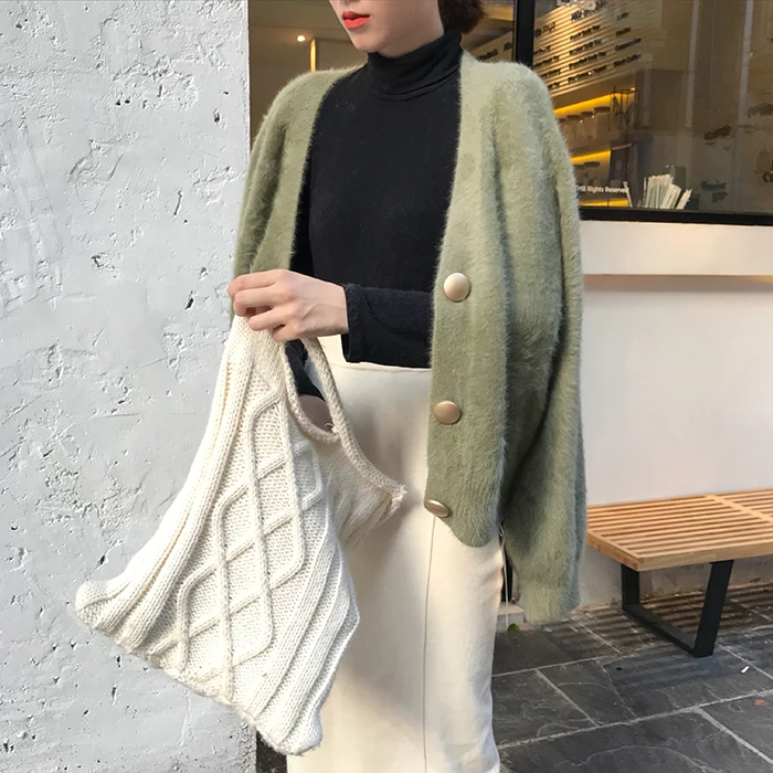 Женский мохеровый свитер, элегантный короткий однобортный Кардиган ...