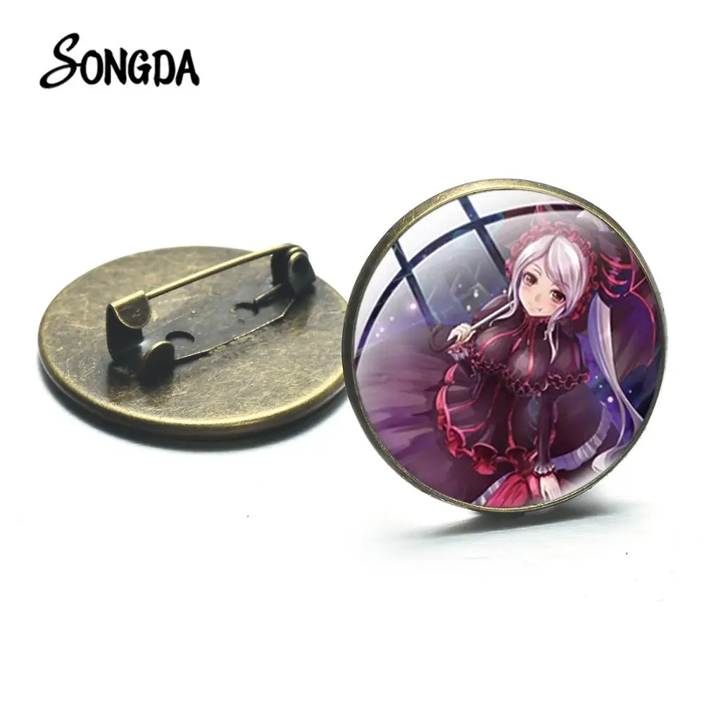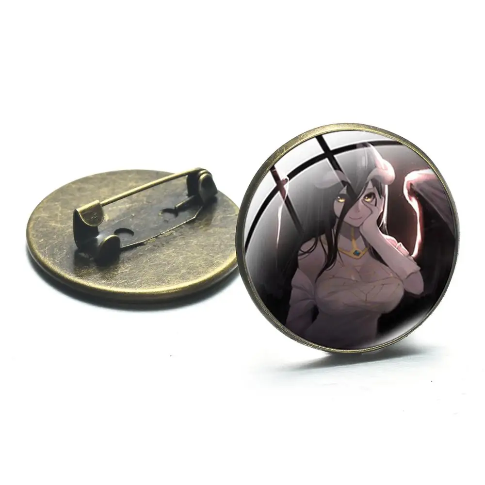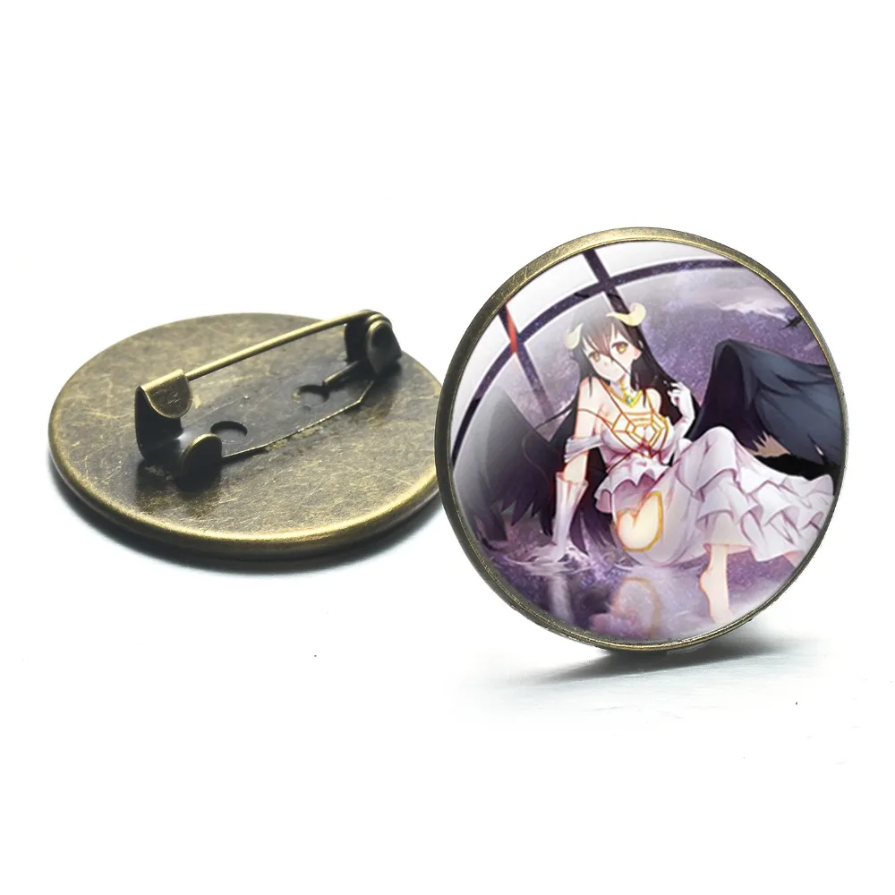 Винтаж в готическом стиле Overlord Аниме Коллекция брошь в виде Kawaii художественный плакат с персонажами из мультфильмов Стекло Круглая Металлическая пуговица в подарок для мальчиков и девочек, Отаку