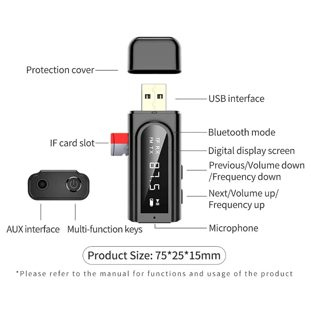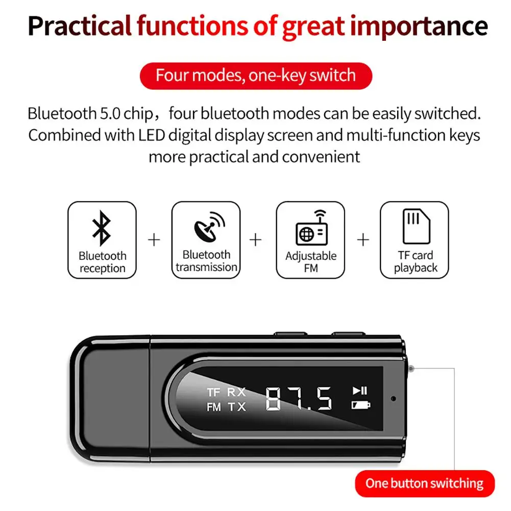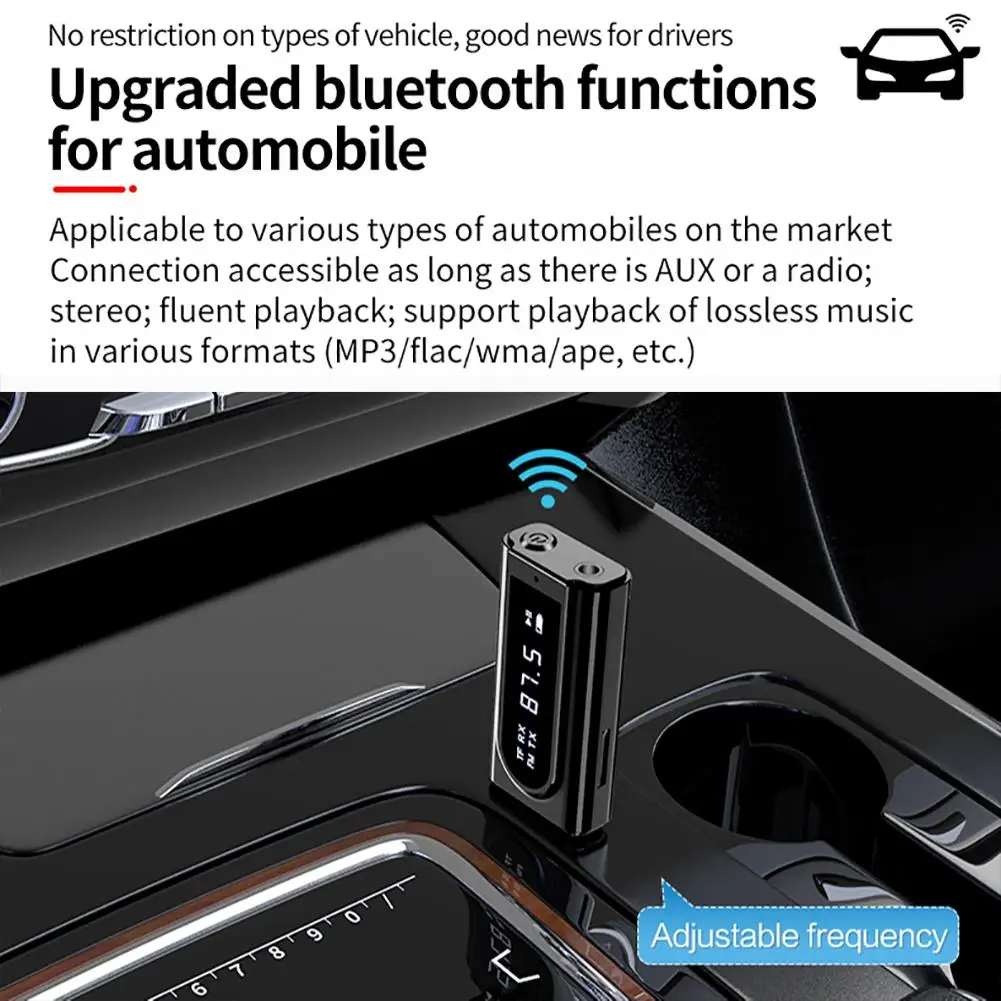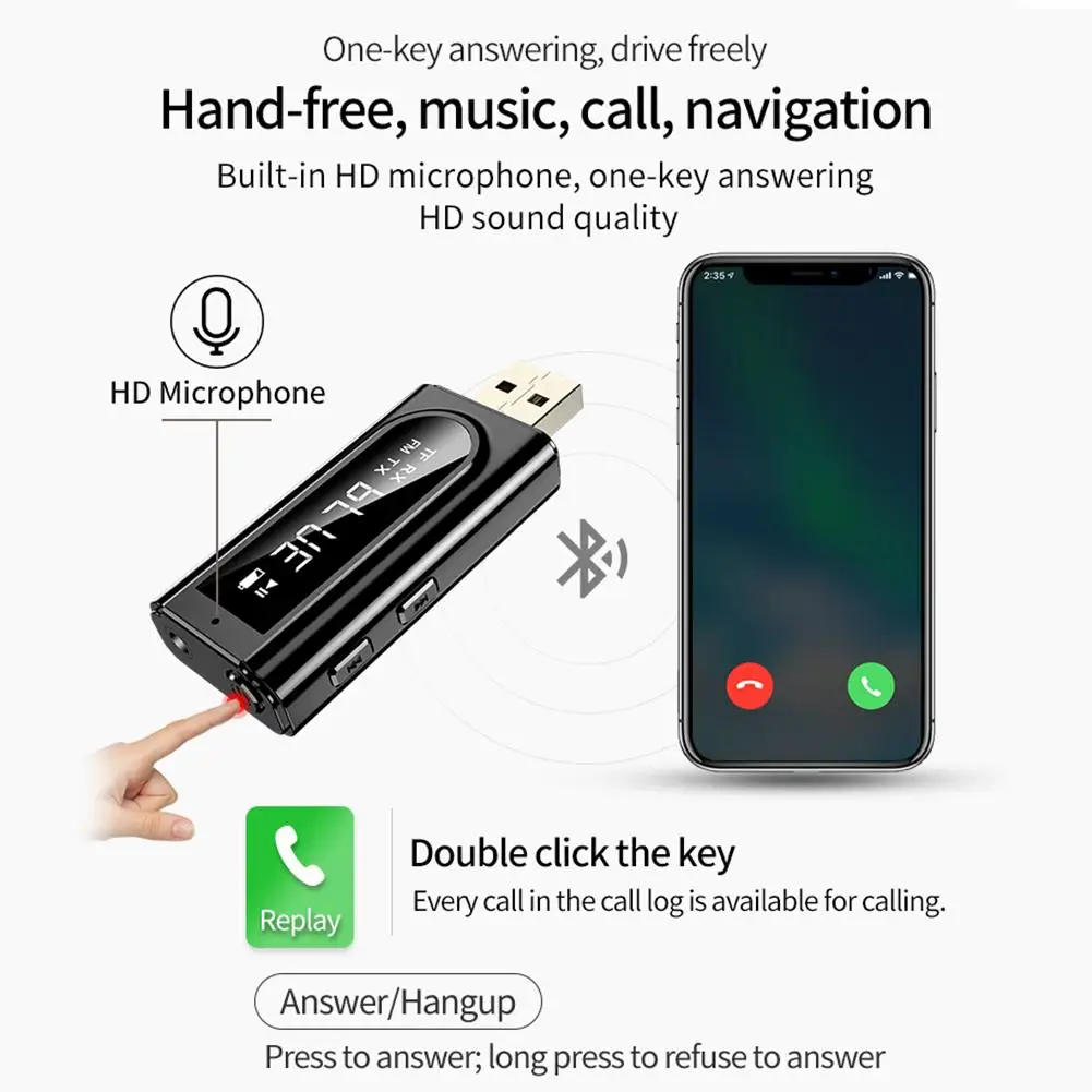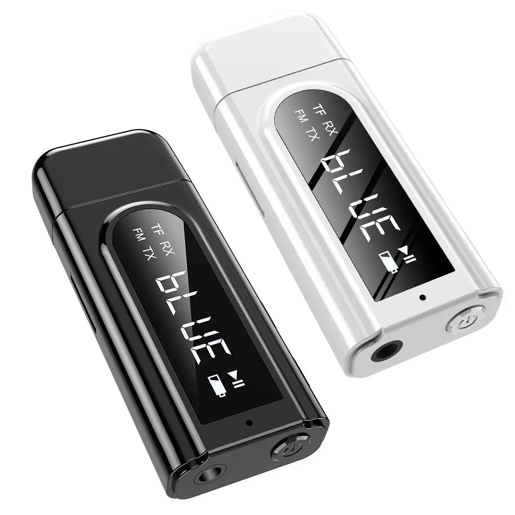 Автомобильный светодиодный передатчик 2 в 1 Bluetooth 5,0, модулятор Aux FM, кардридер для TF-карт с микрофоном, кабель 3,5 мм для звонков без рук