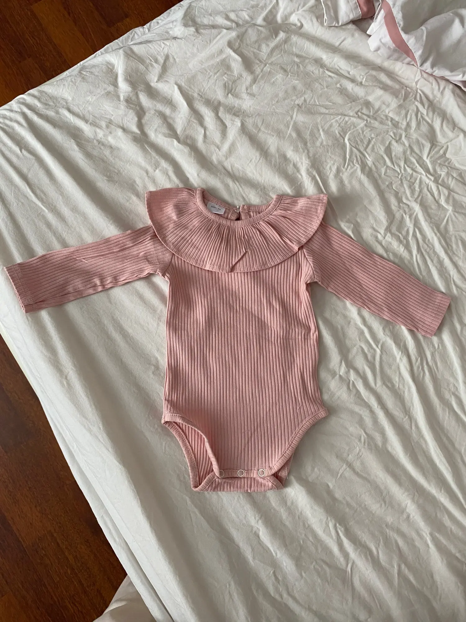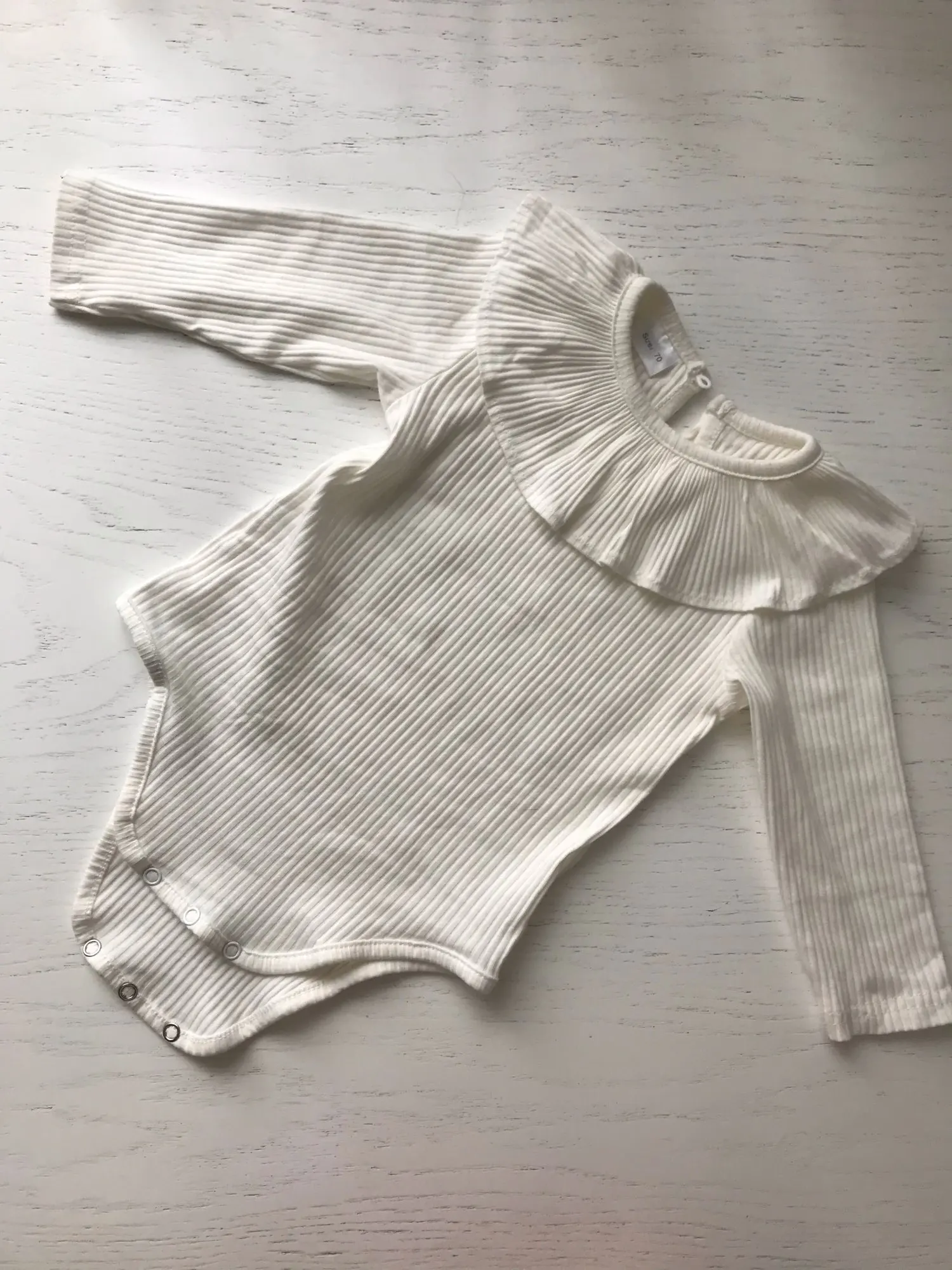 Заказывала 2 боди одного размера, прислали разные ростовки. Качество боди не очень, а вот рюша качественная.