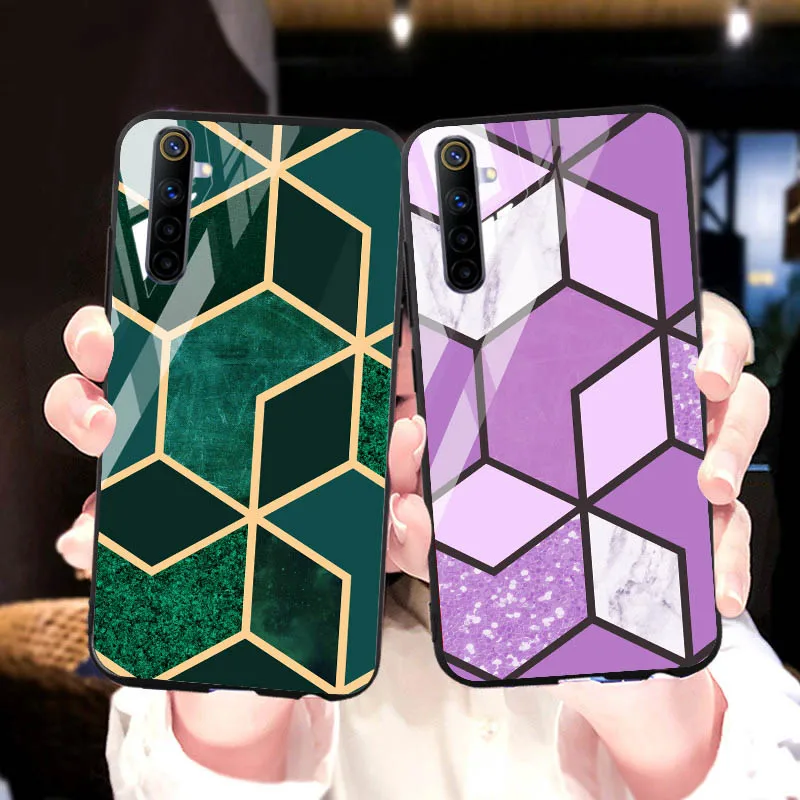 Marble Tempered Glass Case on For Realme 6 Case Funda