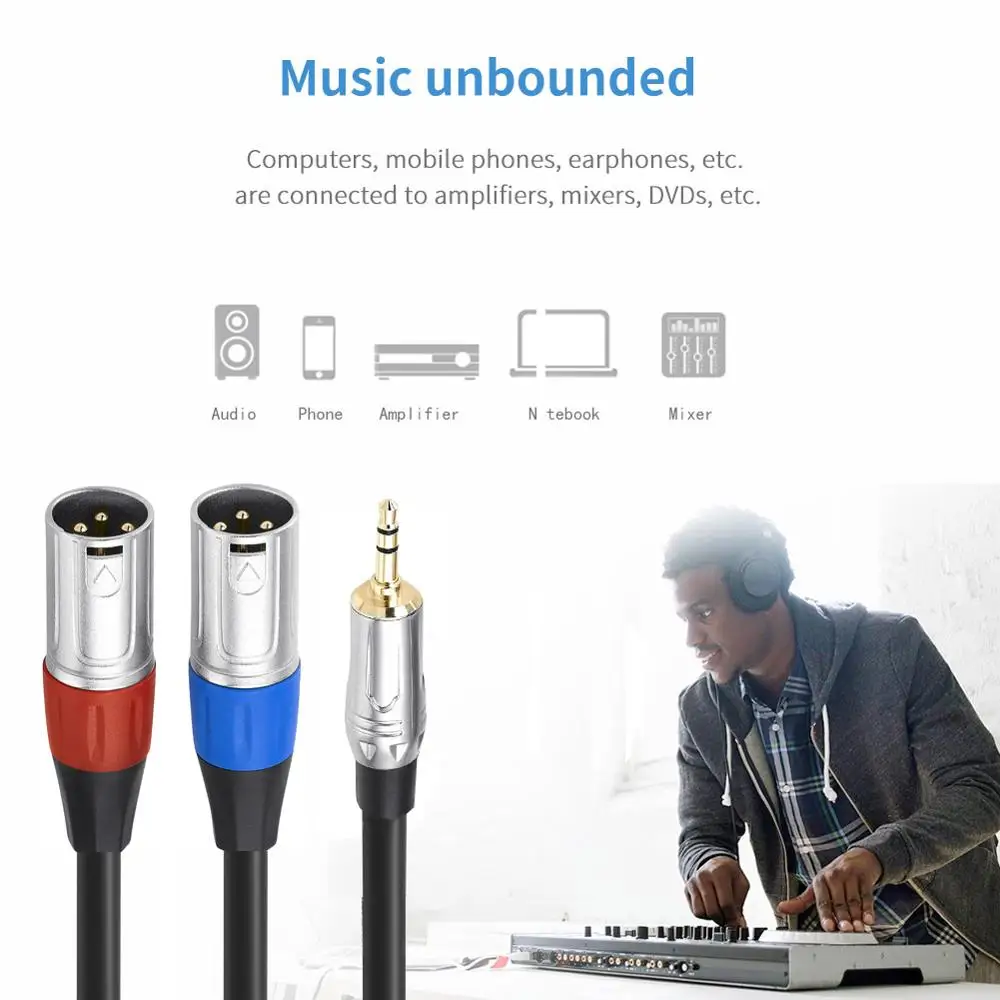 Описание1, длина доступна: 1 м 2 м 3 м; Длина кабеля ветки: около 50 см каждая сторона2. Цвет: черный3, Тип: 3,5 мм стерео Aux Jack с двойным XLR Мужской кабель4. Этот кабель идеально подходит для подключения цифрового медиаплеера или аналогичного аудиооборудования dedice к pro, он отлично подходит для мобильных телефонов, планшетов, ноутбуков, или аналогичные устройства, когда вам нужно подключить их к микшерной консоли5, фольга + внутренний Плетеный экранированный + OFC медный сердечник с гибкой резиной для лучшей производительности и более длительного срока службы6. Название бренда: Bochara7, диаметр кабеля: около 6 мм (OD 6,0)Внимание: этот кабель не используется для подключения двух микрофонов